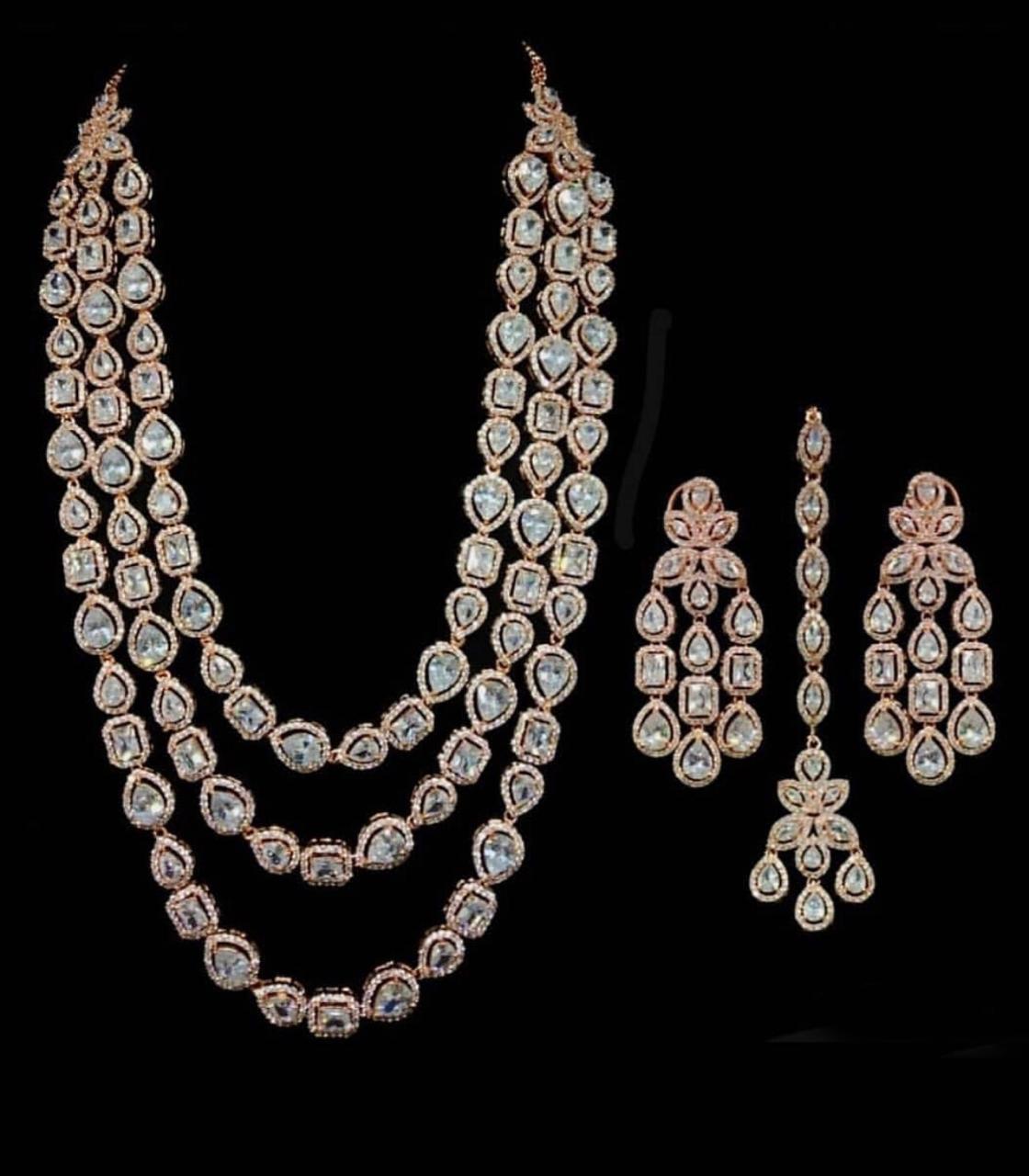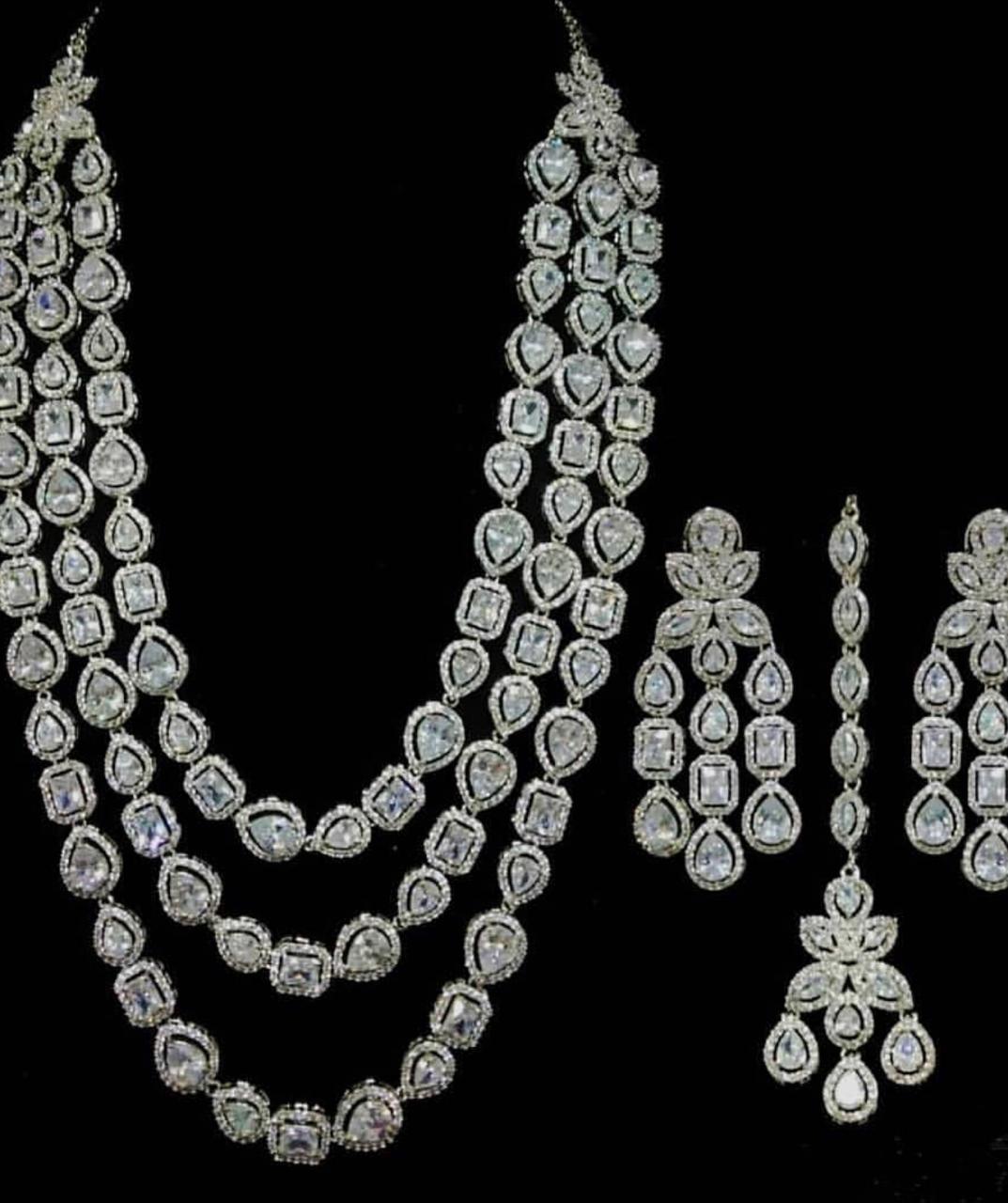 DIAMOND STUDDED NECKLACE SET WITH MATCHING MAANGTIKKA FOR WOMEN -MOE5DNSM001