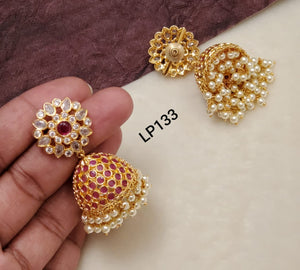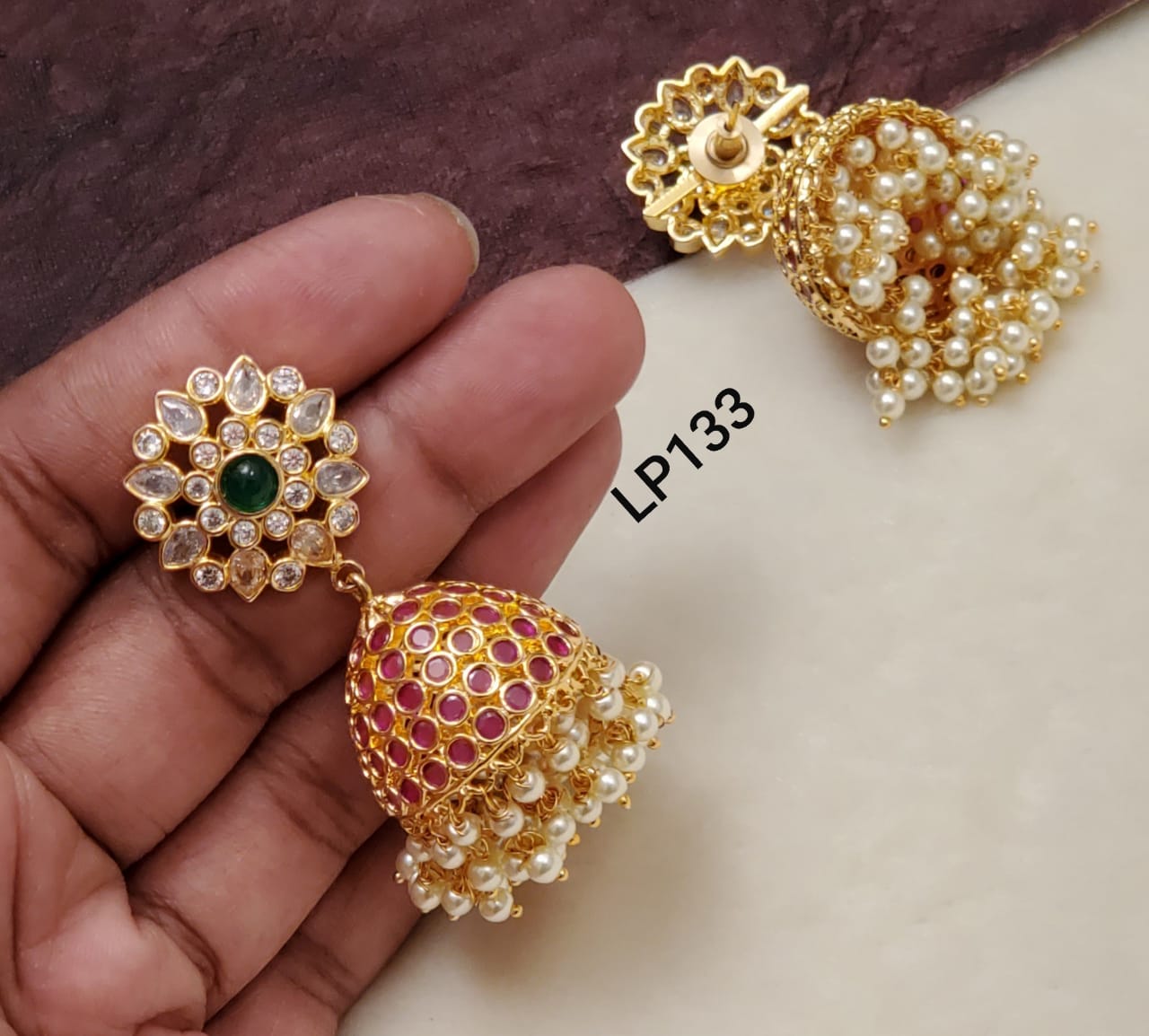 Kemp Stone Jumka for Women with Pearl hanging umbrella and polka stud