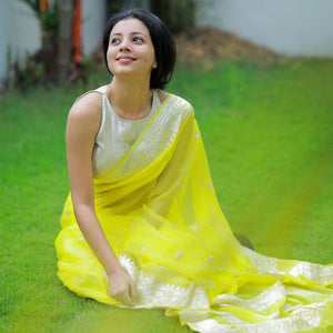 Exclusive Banarasi Handwoven Silver Pure Chiffon Silk Saree for Women -21EBKWS001
