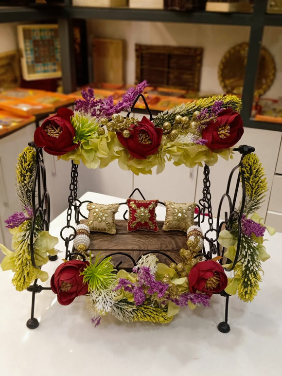 FLORAL DECORATED METAL SWING / JHULA FOR LADDU GOPAL