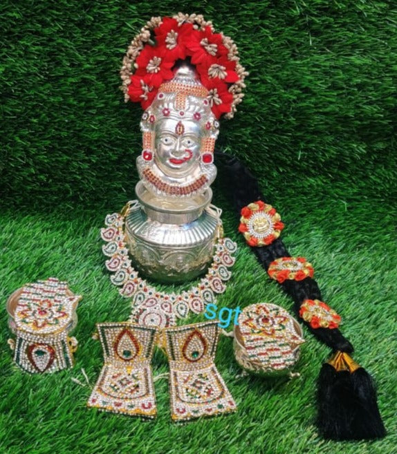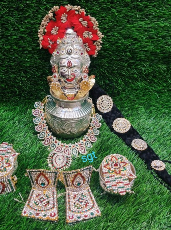 Full set German Silver washable Lakshmi Face with Jewellery, Ashta Lakshmi kalsha, Stone hara, Hands, Legs-HDPA001