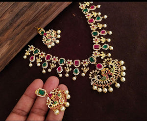 Mandira , elegant Gold Jewelry Finish Diamond studded Necklace Set for women -LR001DNB
