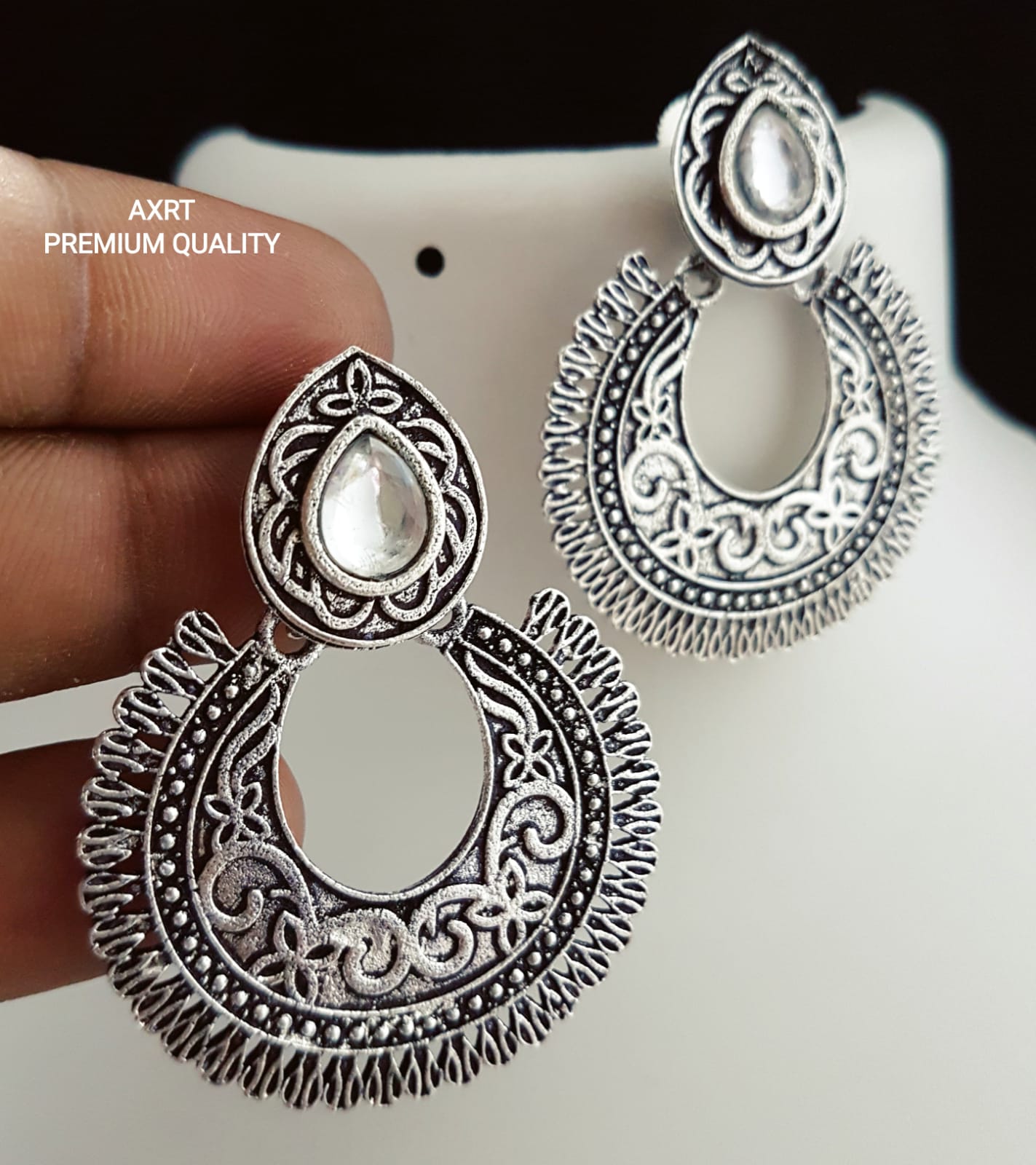 GERMAN SILVER S LIGHT WEIGHT STONE EMBEDDED BALI FOR WOMEN -SKDJ3B001