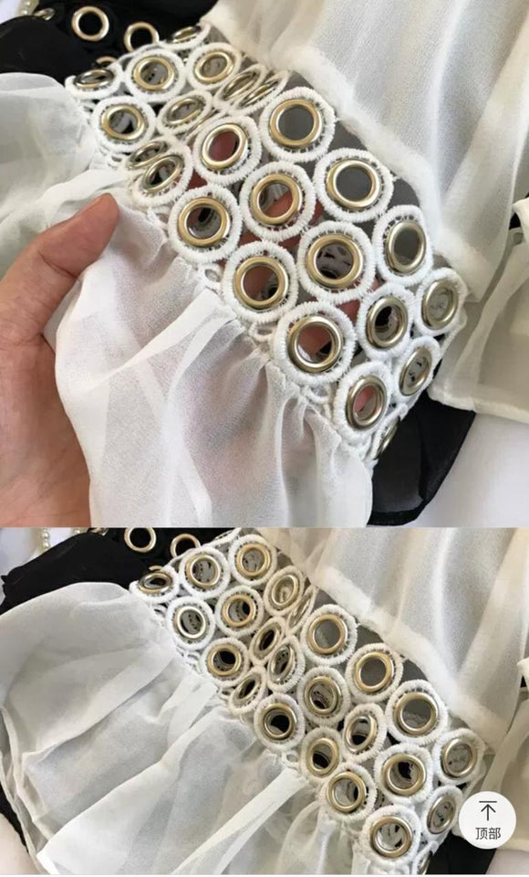 2019 Spring Autumn Neploe Lace Up Metal Ring Hollow Out Ruffle chiffon top*