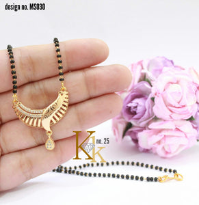 Vyshali , elegant Gold Finish Black Beads Diamond Mangal sutra For women -SANDY001MSF