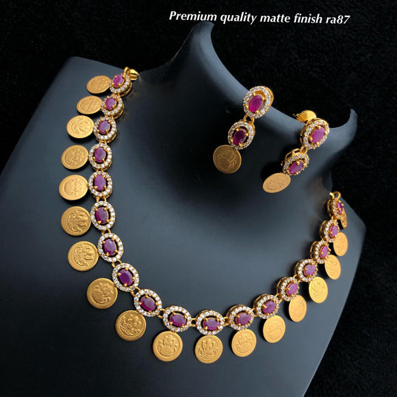 Gold Coin Necklace Set With Stones