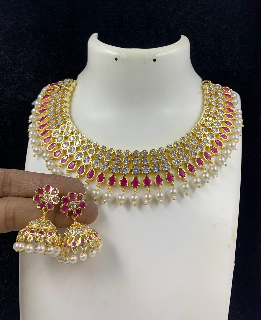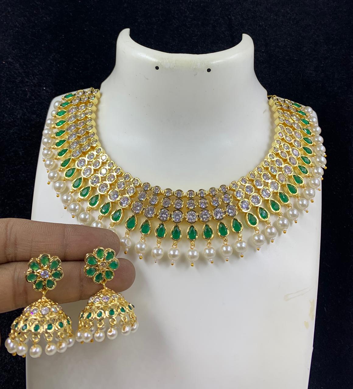 Mandira , elegant Gold Jewelry Finish Diamond studded Necklace Set for women -LR001DNB