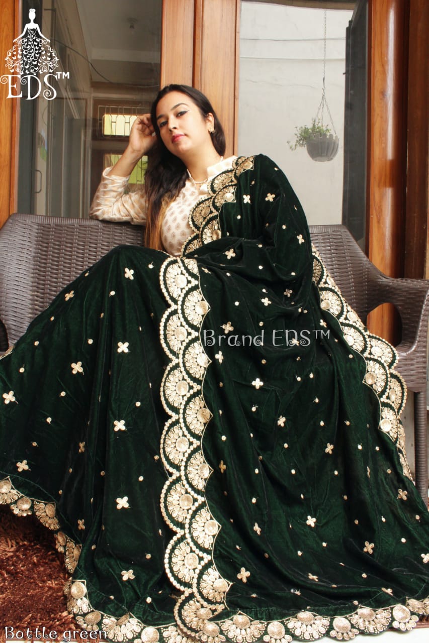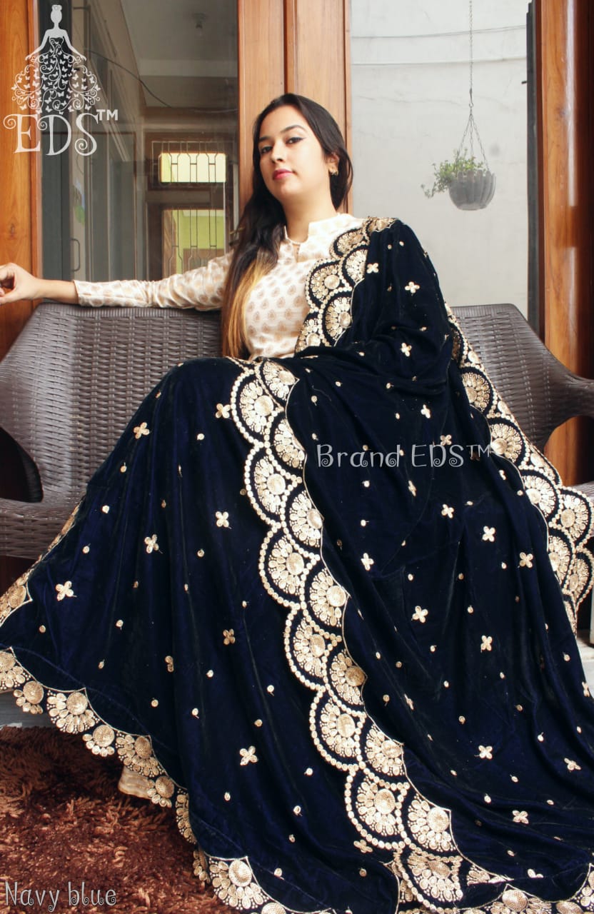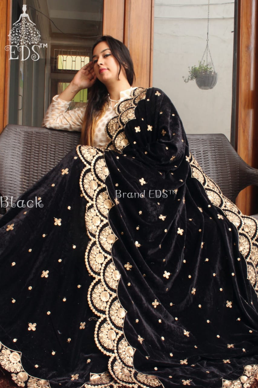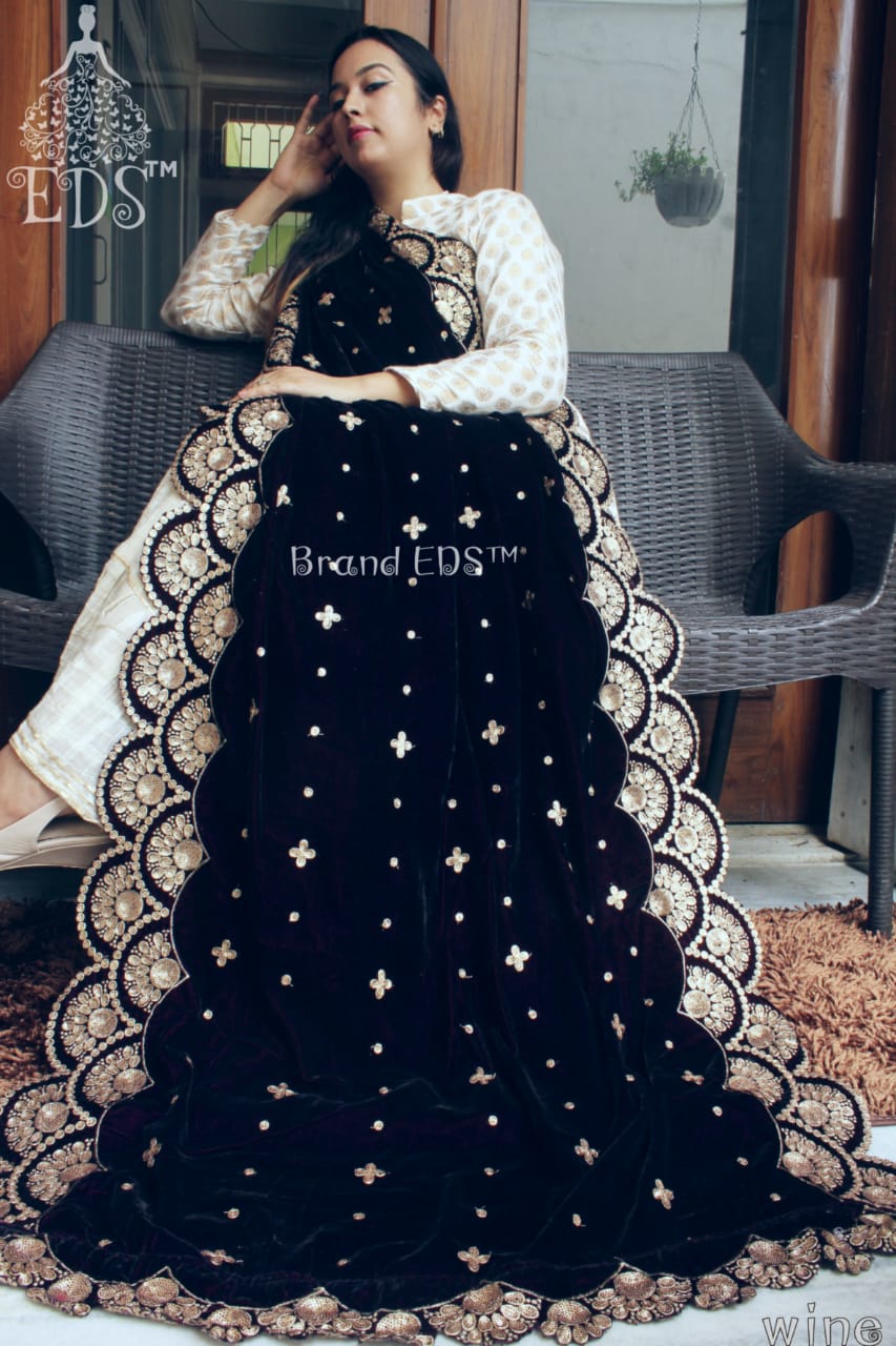 High quality velvet Dupatta with aari/sequence/thread embroidery and Gand work