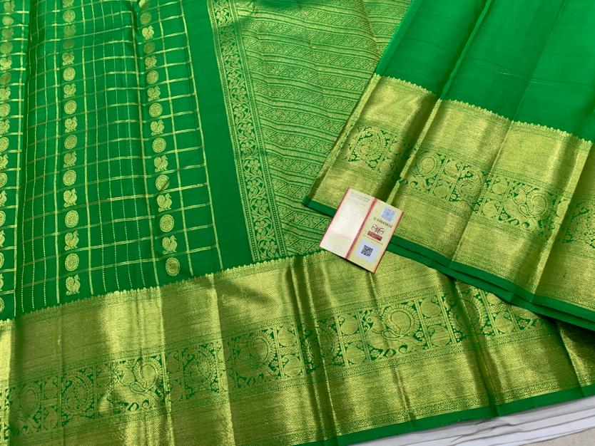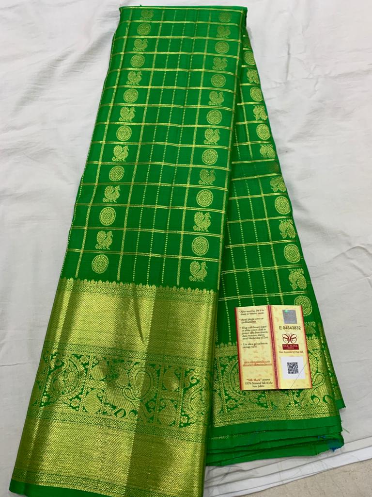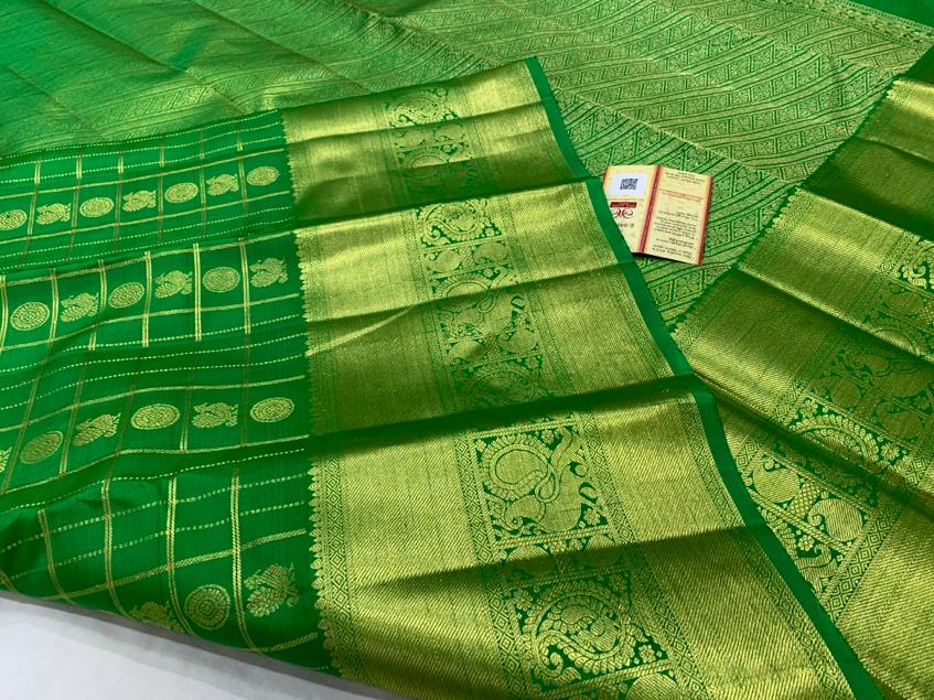 Green Pure Handloom Kanchipuram silk saree for Women -SADP001SS