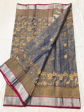 Grey and Red Chanderi silk Tissue Saree