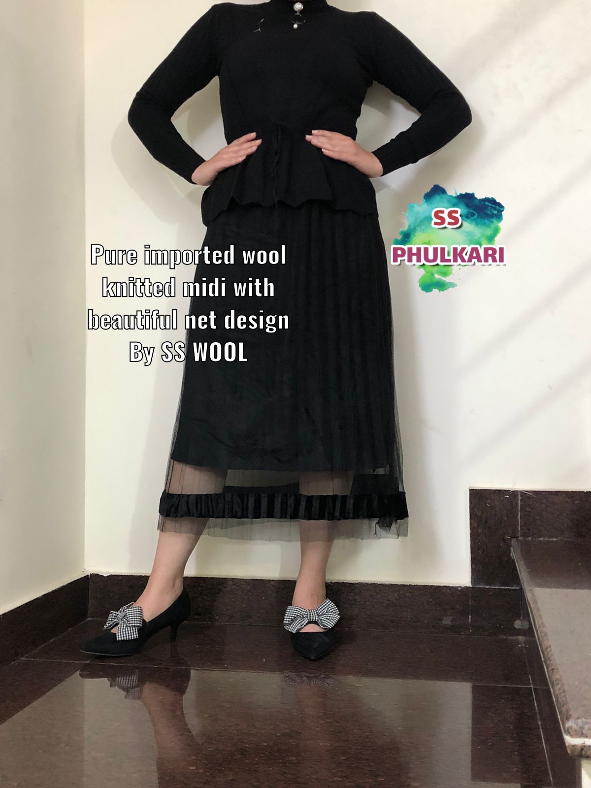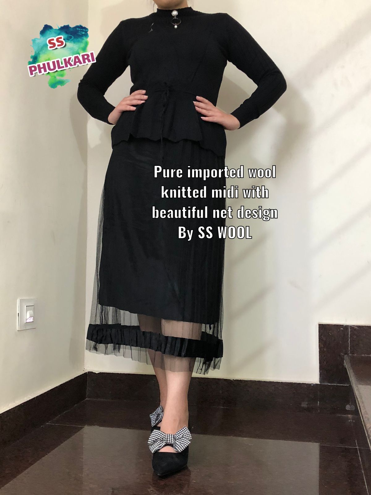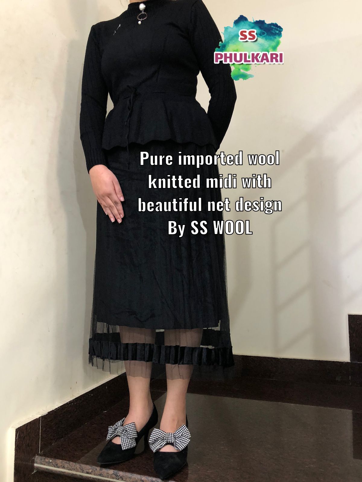 Pure imported heavy wool knitted one piece dress with beautiful net design inner inside is of velvet