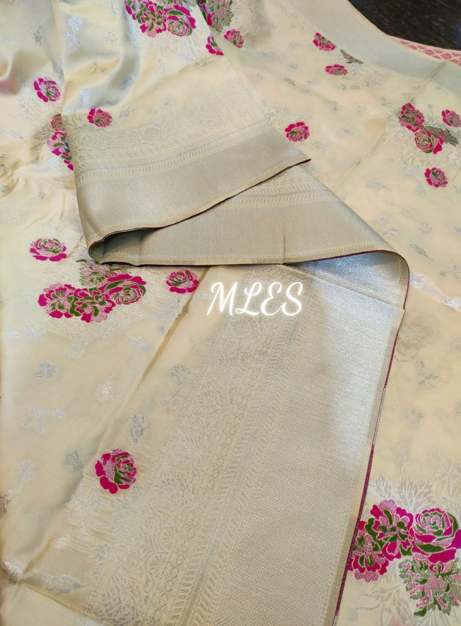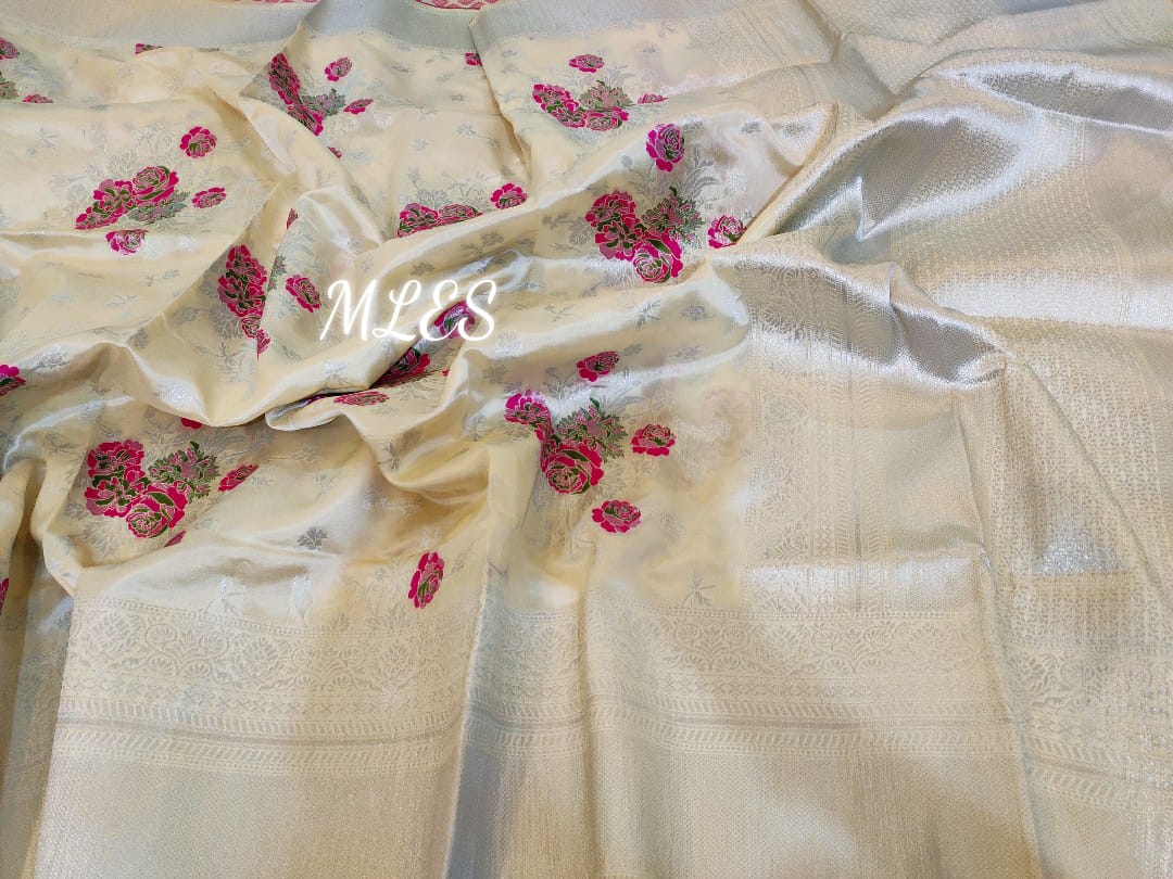 Inspired floral design Semi Banarasi Saree from Bollywood-21ESMSW001