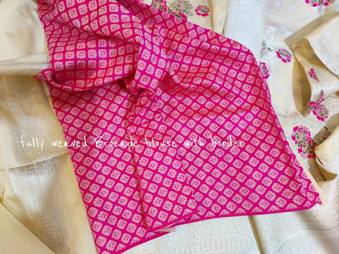 Pairs with contrast Brocade Designer Blouse with Border (image shown )
