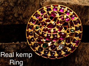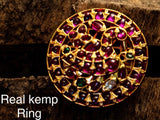 Mrinalini , elegant Gold Finish Statement Green Kundan Finger Ring for women -JAYDU001FR