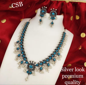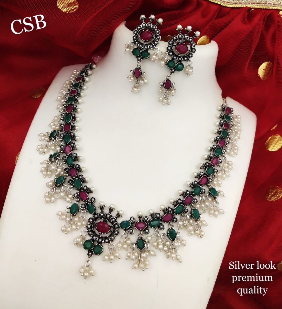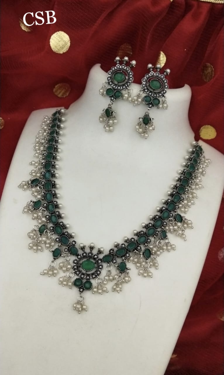 KARTIK, OXIDISED SILVER GUTTAPUSALU NECKLACE SET FOR WOMEN -KCGNSW001
