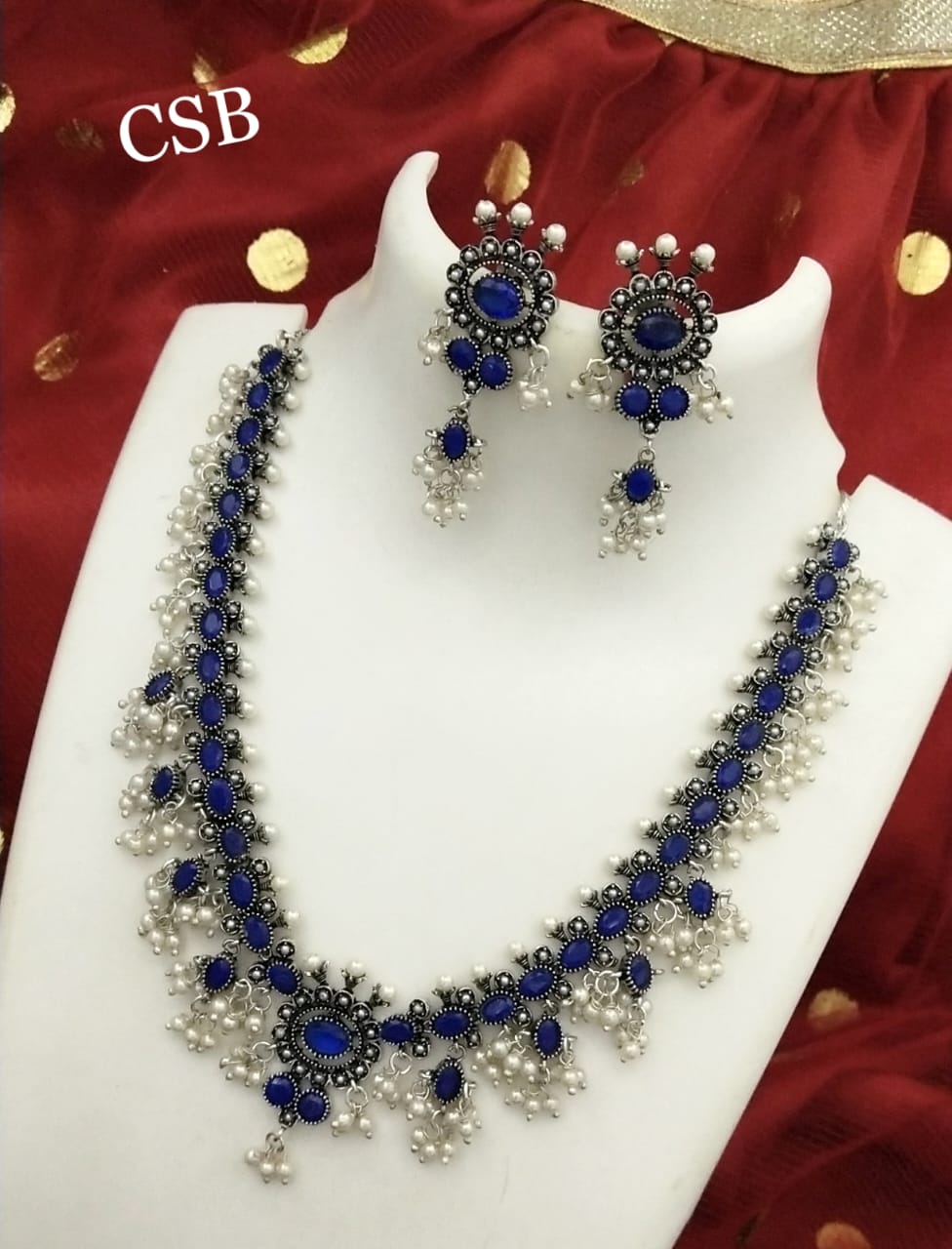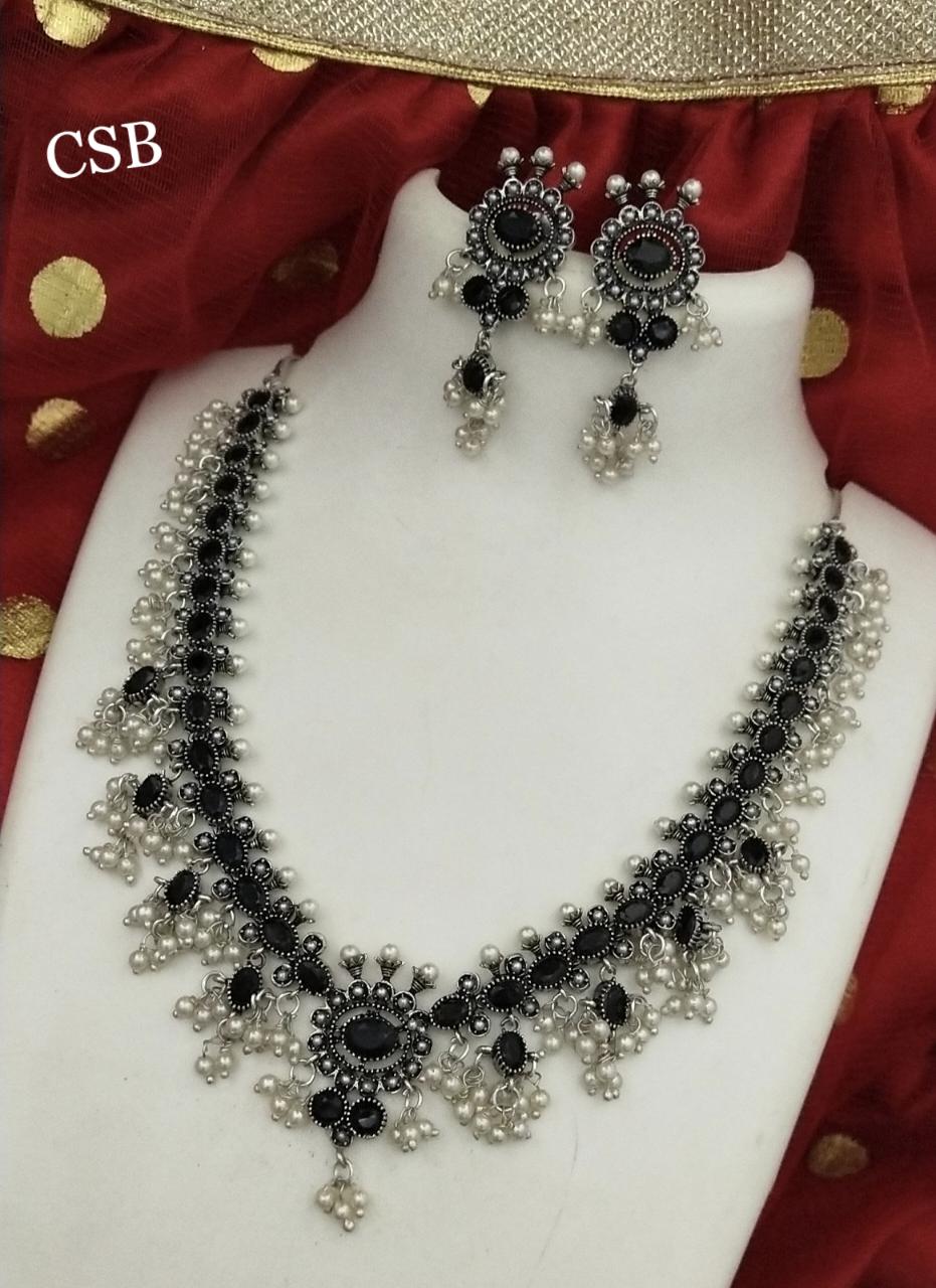 KARTIK,OXIDISED SILVER GUTTAPUSALU NECKLACE SET FOR WOMEN -KCGNSW001