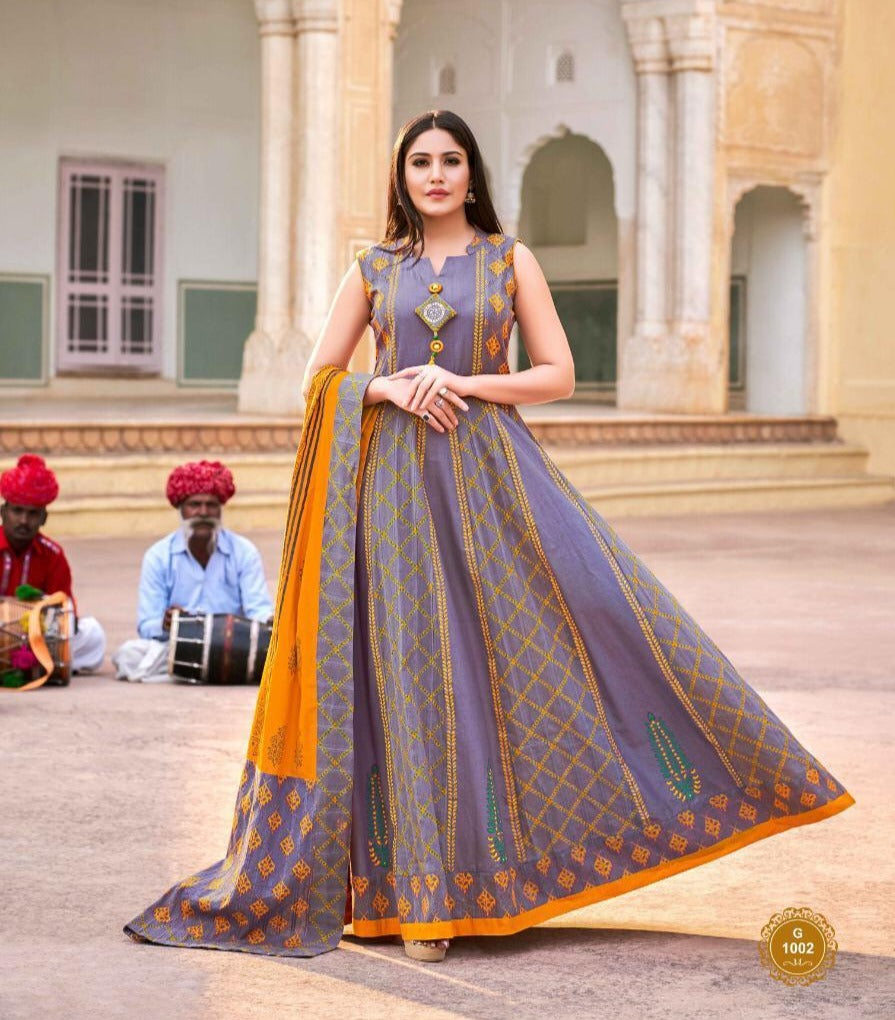 Brings to you, GHOOMAR with a special, designer, Long Duppatta , Embroidery work and,block print.