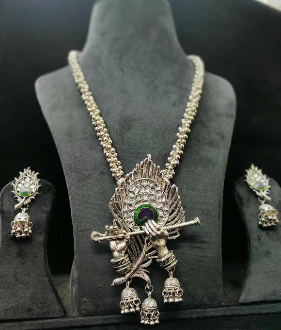 Padmini , elegant Oxidized silver Finish Necklace Set for Navratry 2025-MUSK001OSF