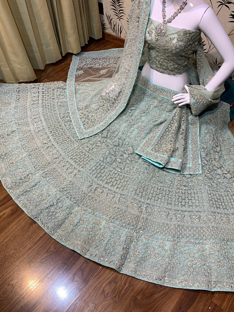 LIGHT BLUE BRIDAL LEHANGA WITH PEARL WORK FOR WOMEN-LIW001