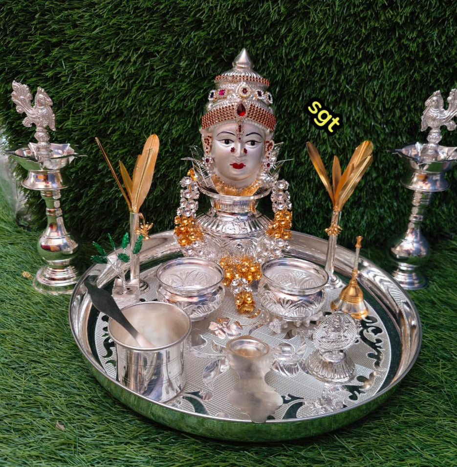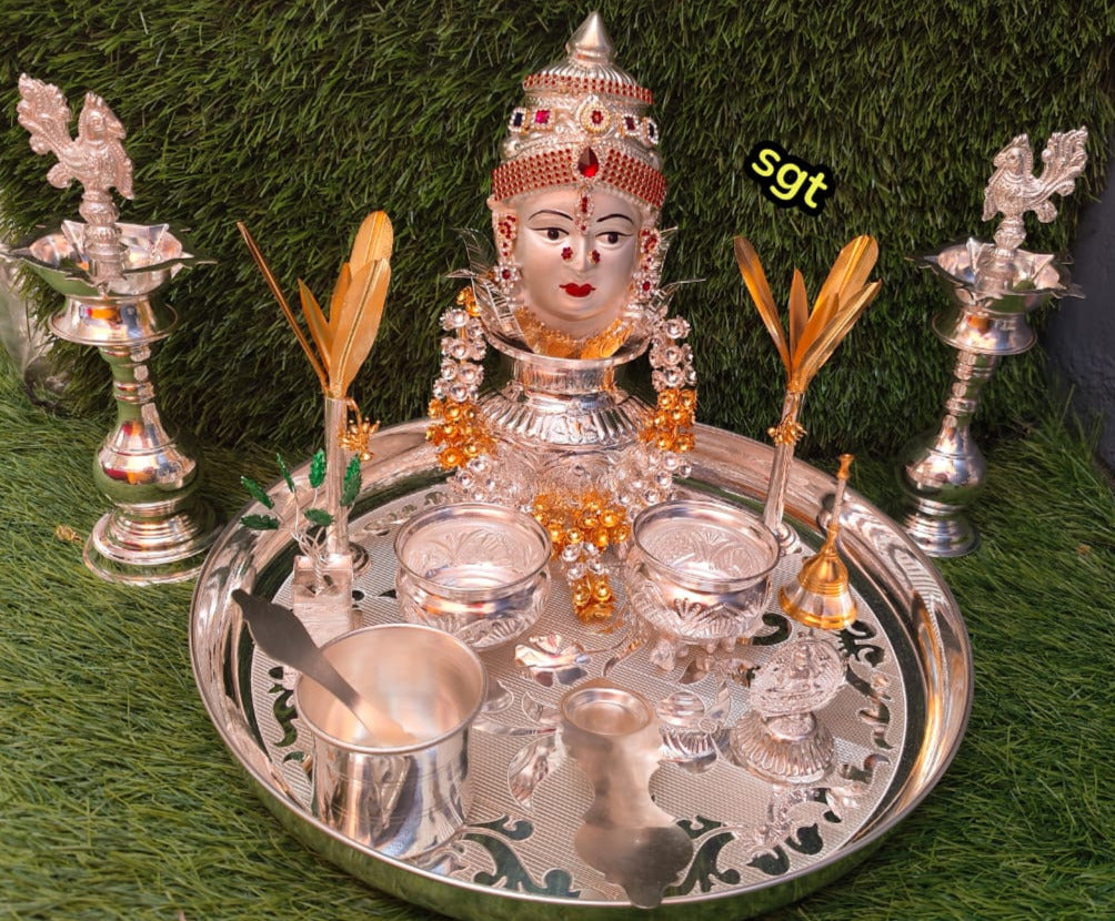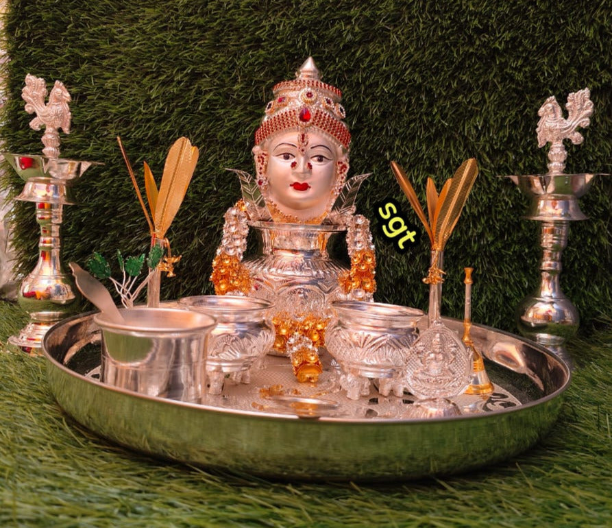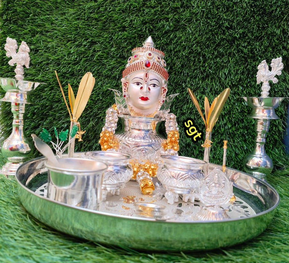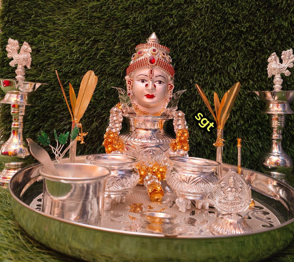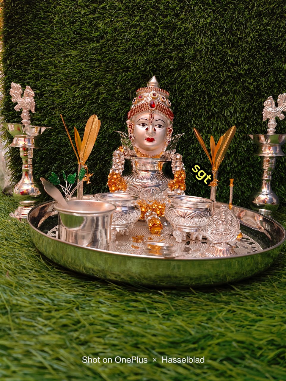 Malavika , German Silver Jumbo  Thali Combo for Puja-SILI001JC