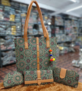 Mandala Design Traditional Ikkat 4Pcs Bag Combo for Women-JCIBC001MD