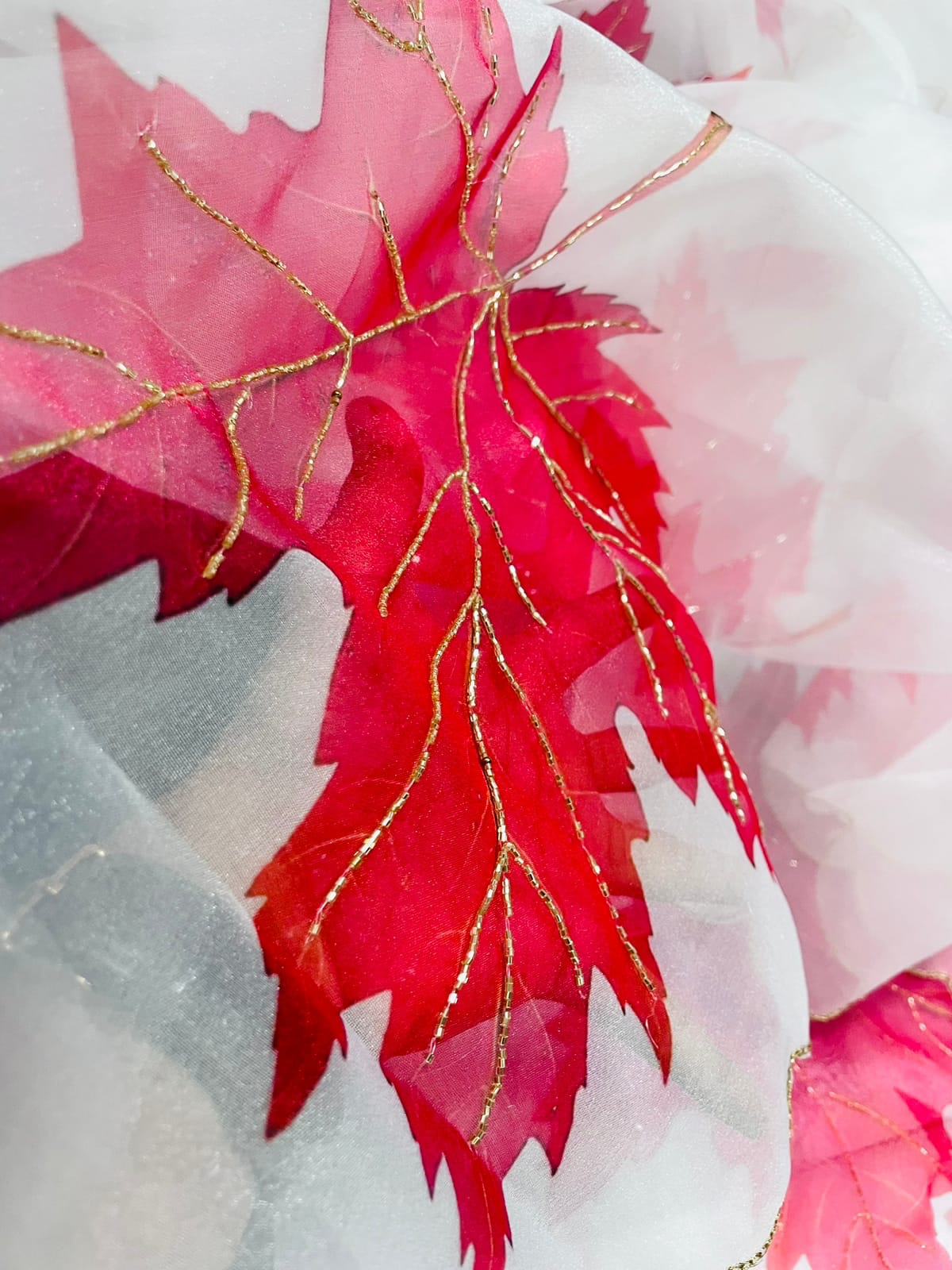 Maples Beauty , Red Maples design White Organza Saree with Blouse-SHRI001WO