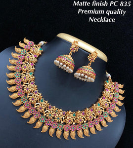 Matte finish gold Necklace set with jumka
