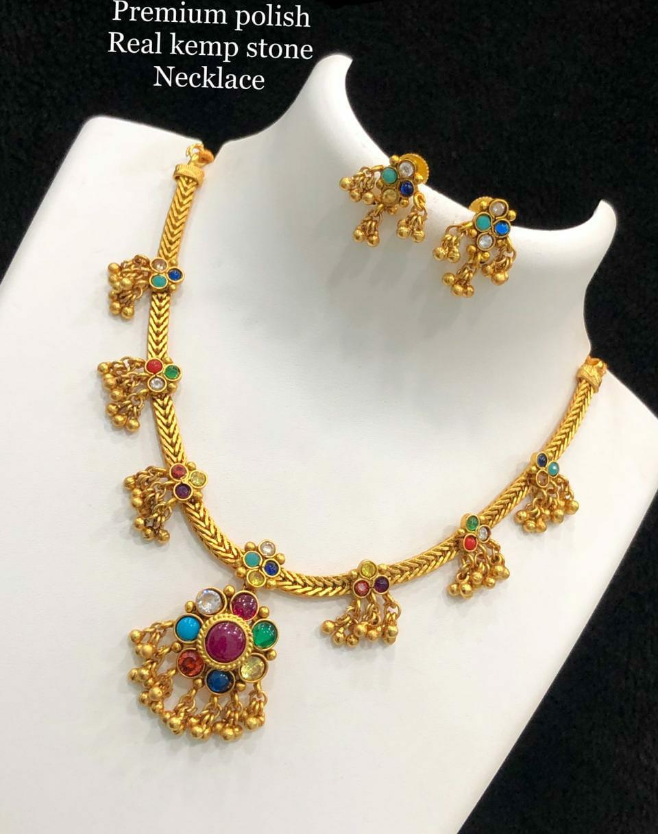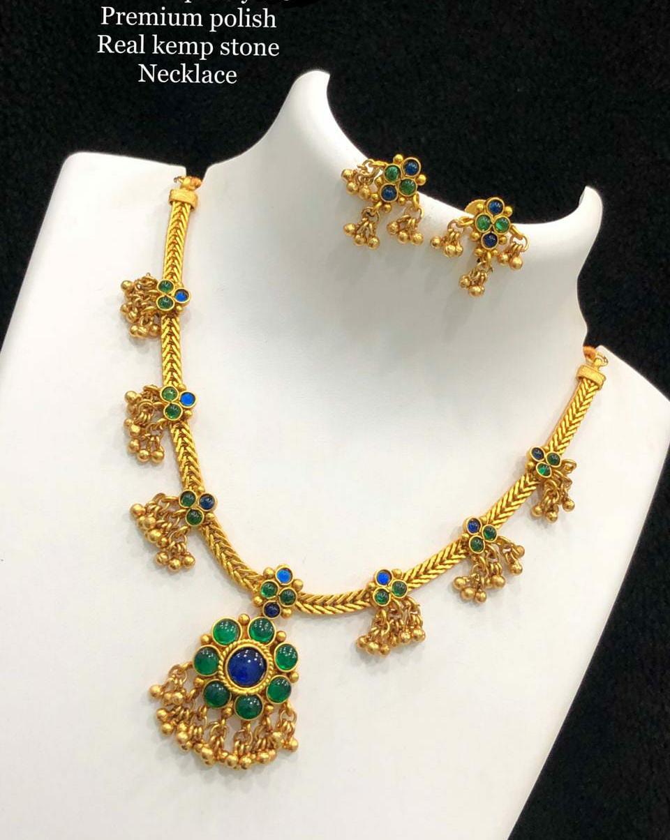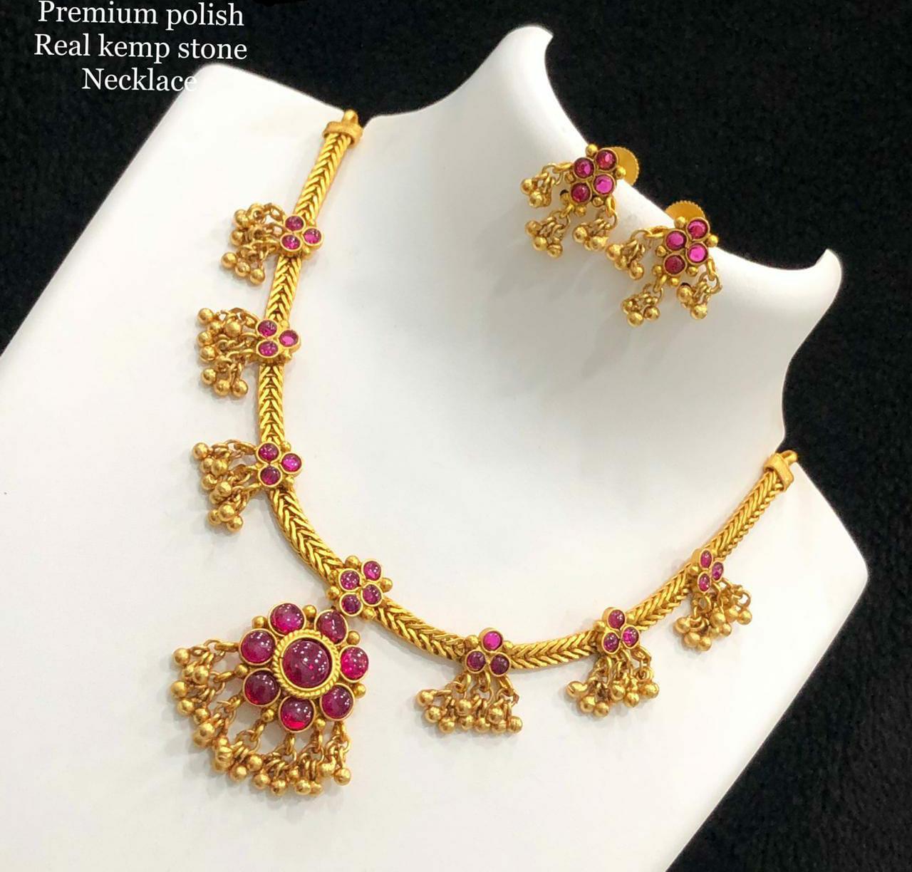 MATTE GOLD FINISH GHUNGROO KEMP NECKLACE SET FOR WOMEN -ARTNS001
