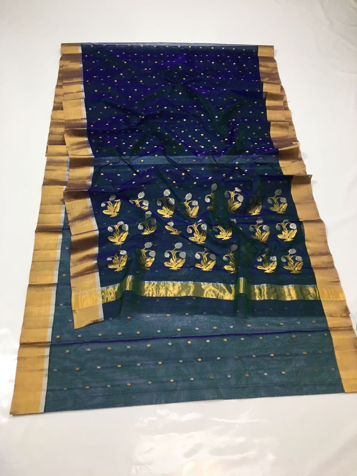 MAYURA SHREE , PEACOCK GREEN DOUBLE SHADED PURE ORIGINAL KATAN SILK SAREE FOR WOMEN -SHAB001PB