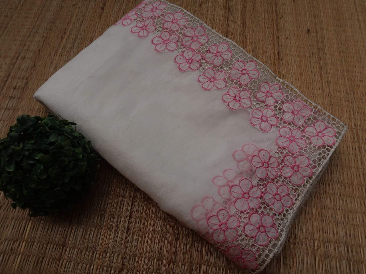 NADIYA, Pure White Organza Cutwork saree with Semi Raw Silk Blouse piece-KIA001SRSW