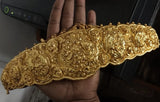 In order to have royalty and bridal appeal on full show, Gold is a big factor for any woman. Gold just never goes out of fashion and simply looks stunning over any kind of outfit, weather it’s a heavy lehenga or a simple bridal outfit. It will be a prized possession for your closet being an exquisite piece in yellow metal. You just need to nail the look right with a beautifully created gold or golden Kamarbandh.