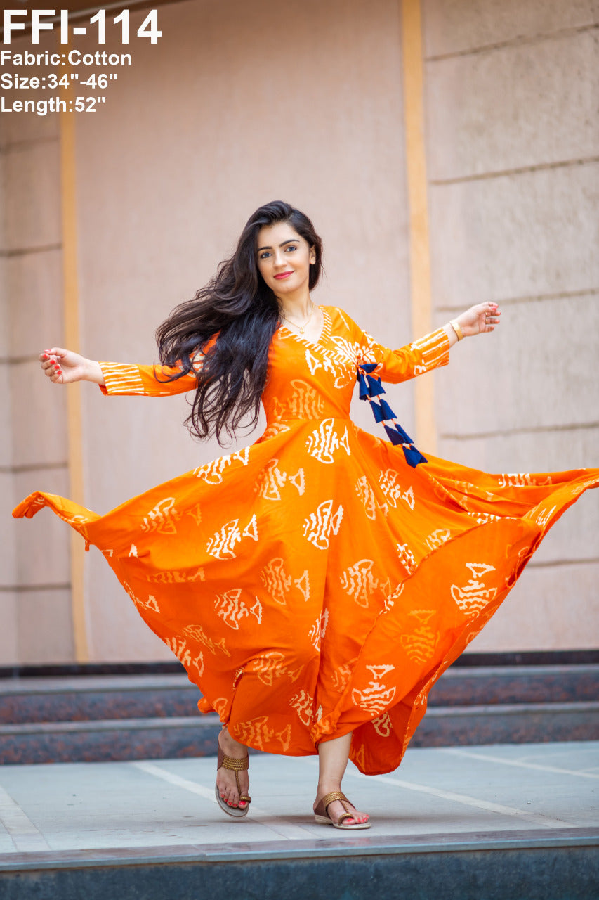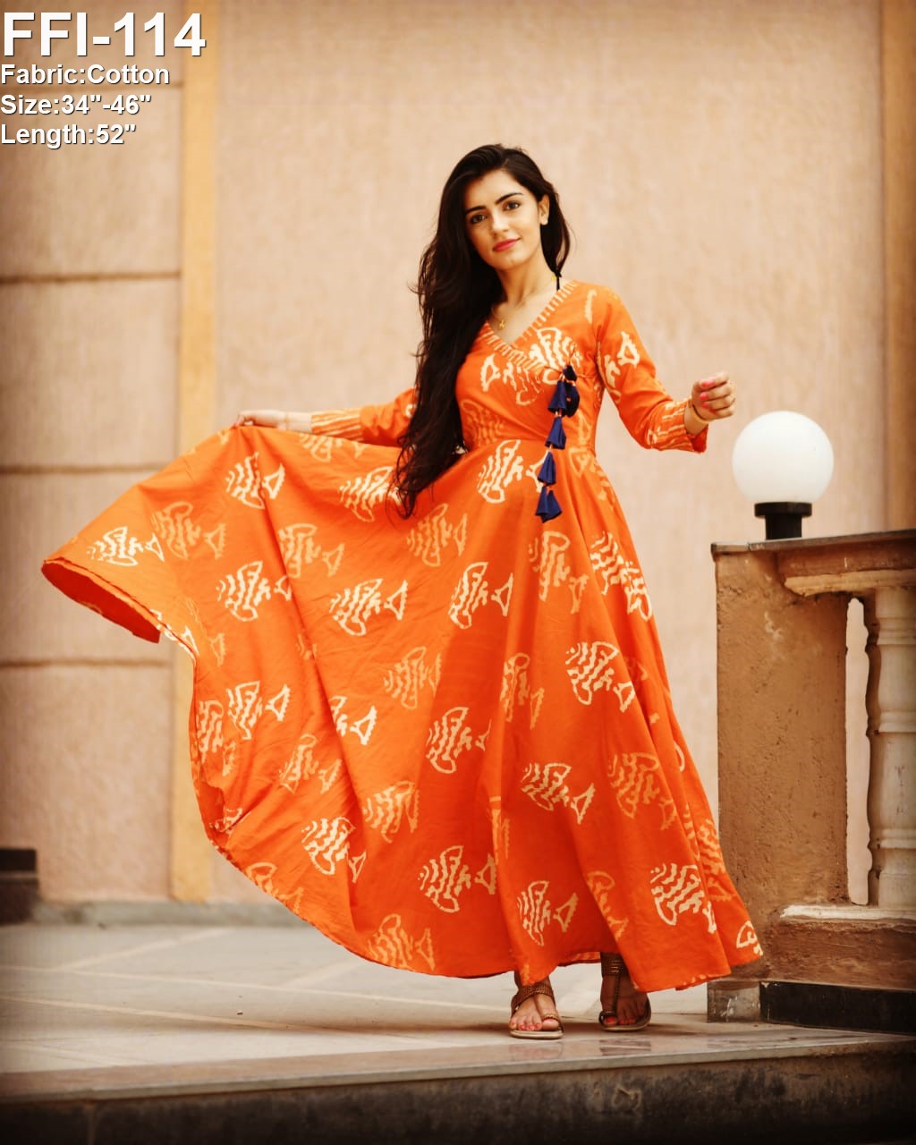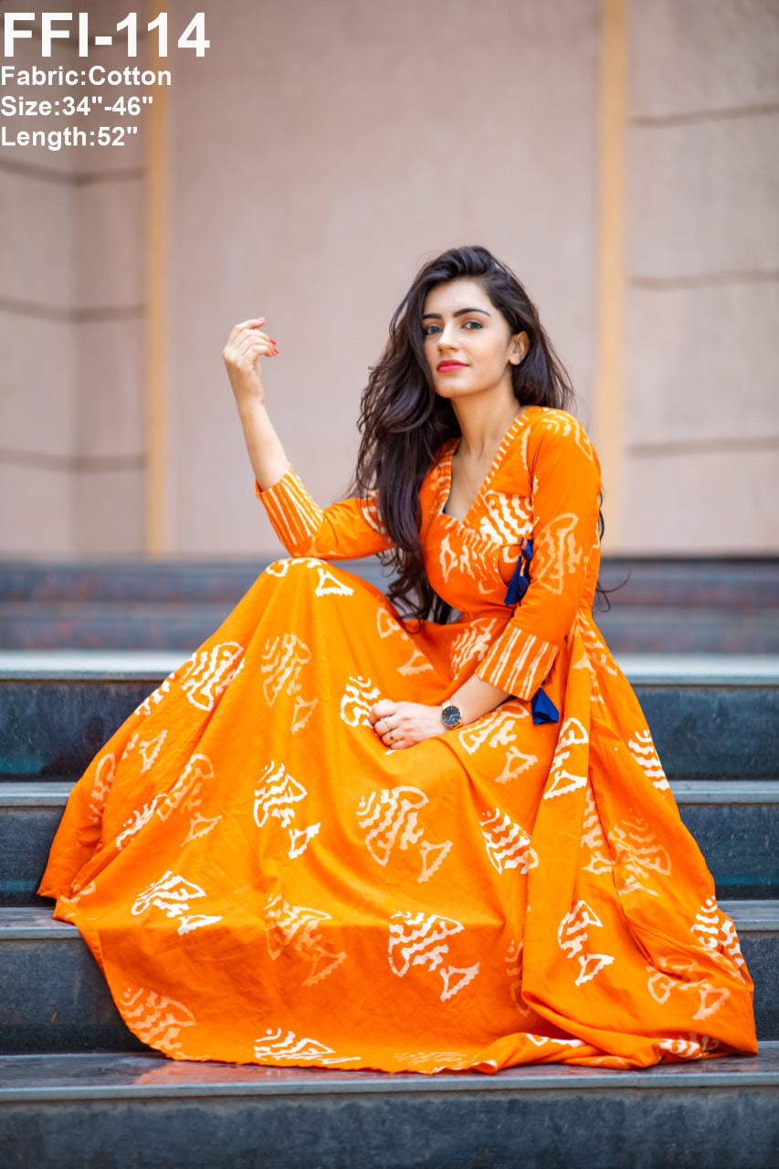 NP Exclusive Collection Premium Russian Silk Printed full flair gown Kurti for Women -OFZBKW001