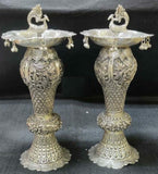 PAIR OF ANTIQUE FINISH GERMAN SILVER PEACOCK LAMPS/DEEPAMS -SGTPD001