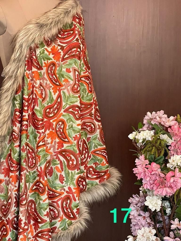 PAISLEY ORANGE, Woolen Heavy embroidered stole with four side fur edges-MOE001A