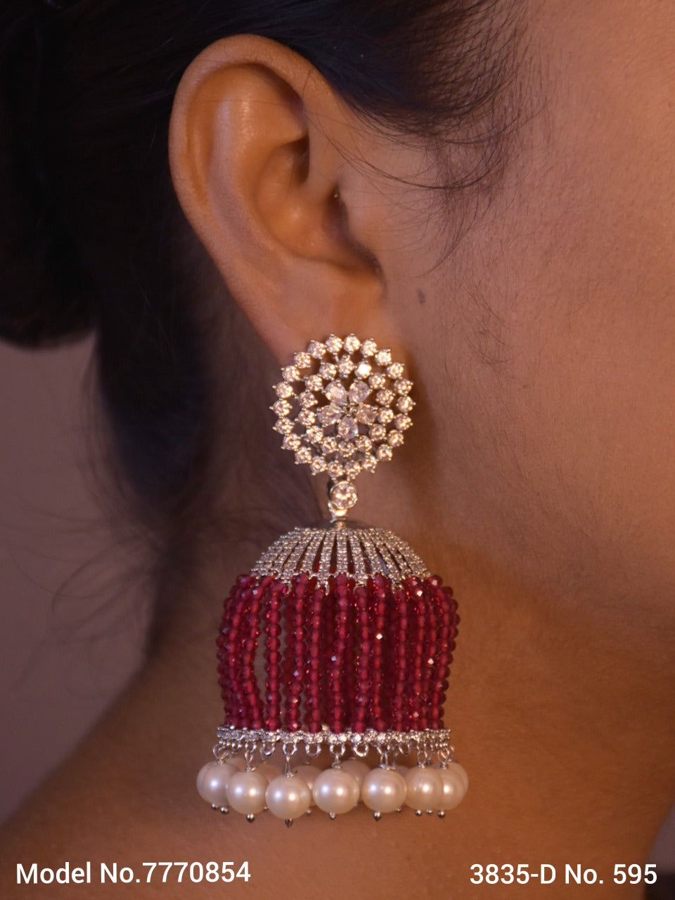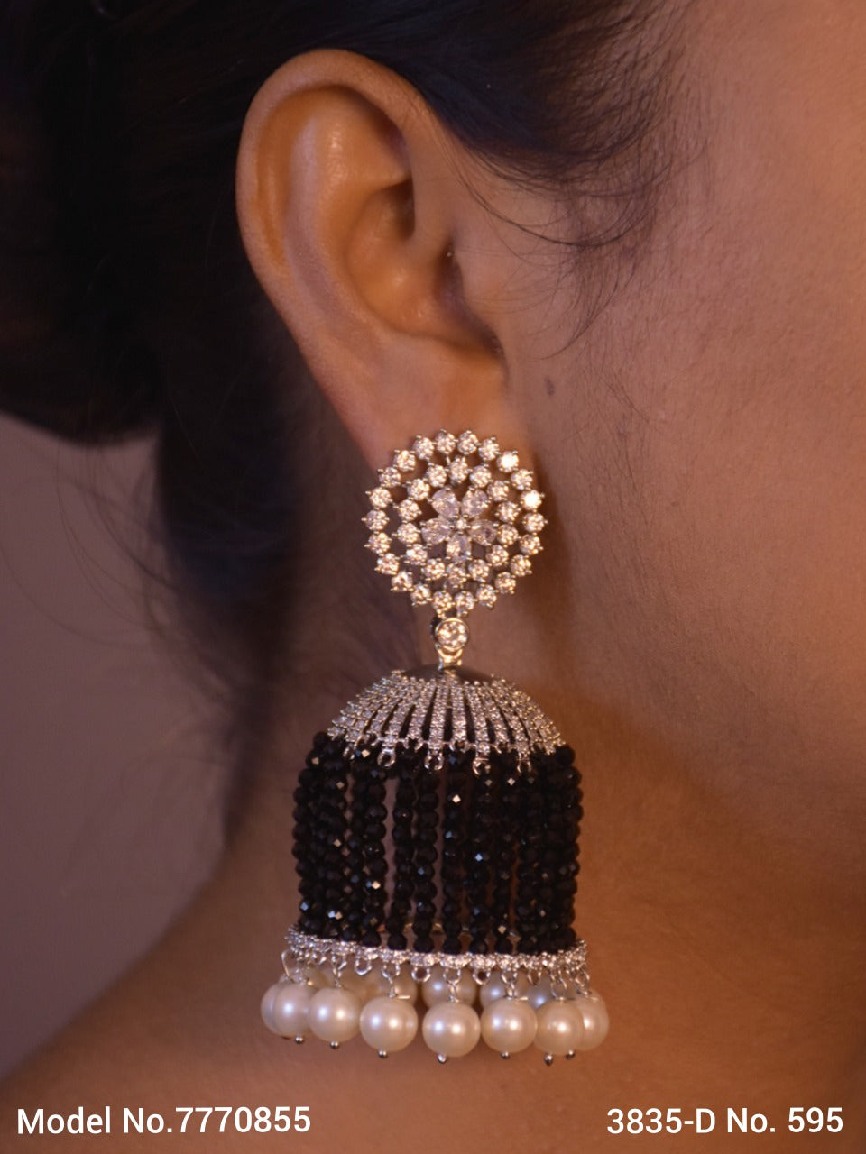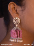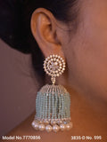 PAKEEZA, ELEGANT PLATINUM FINISH STONE JUMKA WITH BEAD DOME FOR WOMEN -SANDY001J