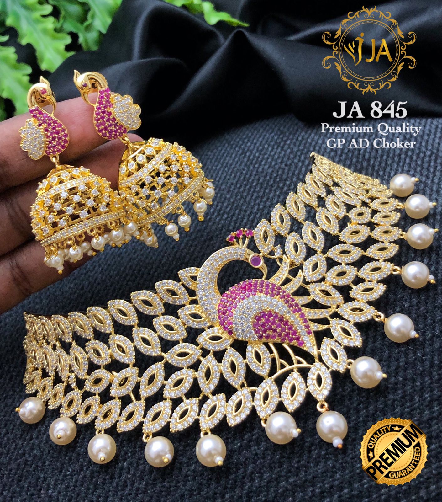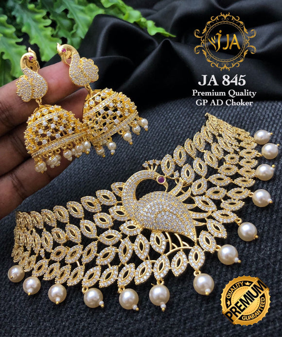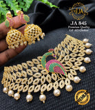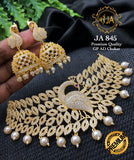 PEACOCK DESIGN STONES NECKLACE WITH MATCHING STONES JUMKA FOR WOMEN