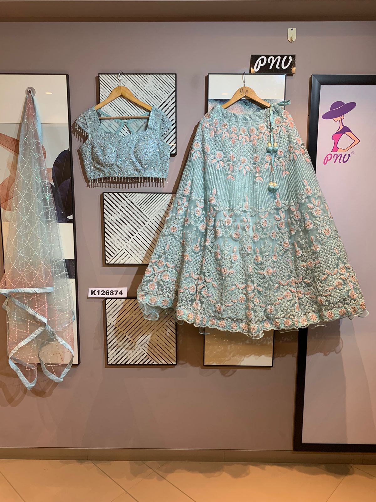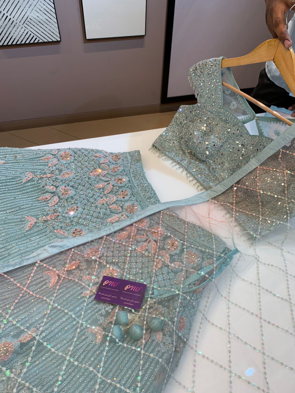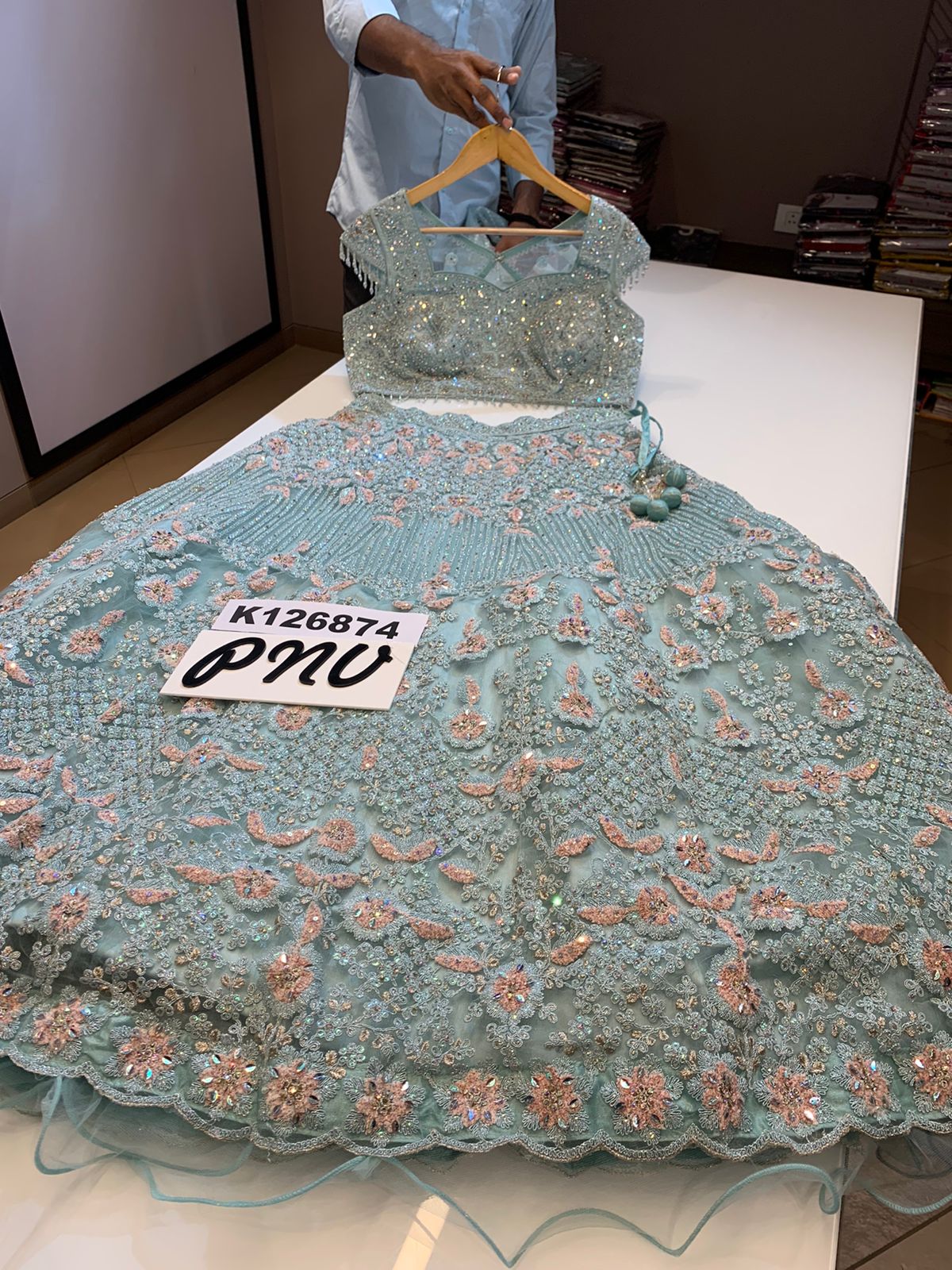 Georgette floral lahnga with beautiful sequins work
