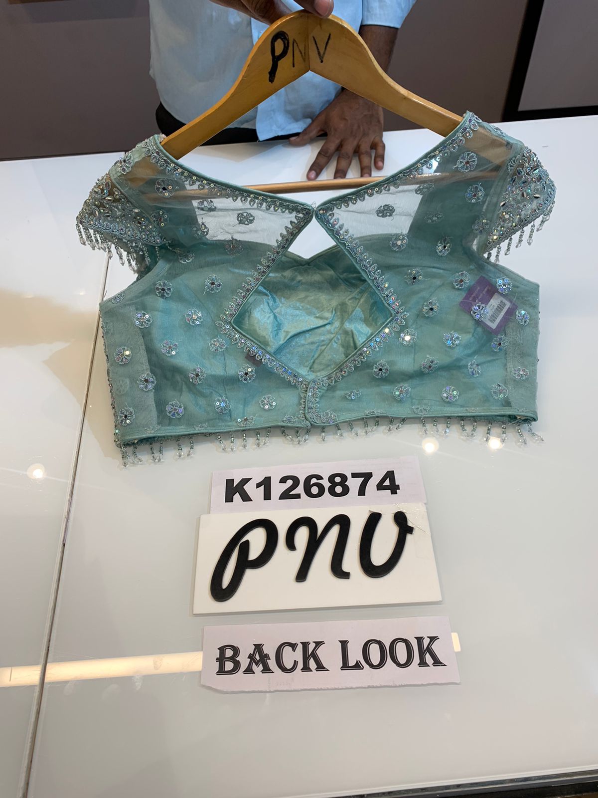 Georgette crop top with heavy sequins work front and back