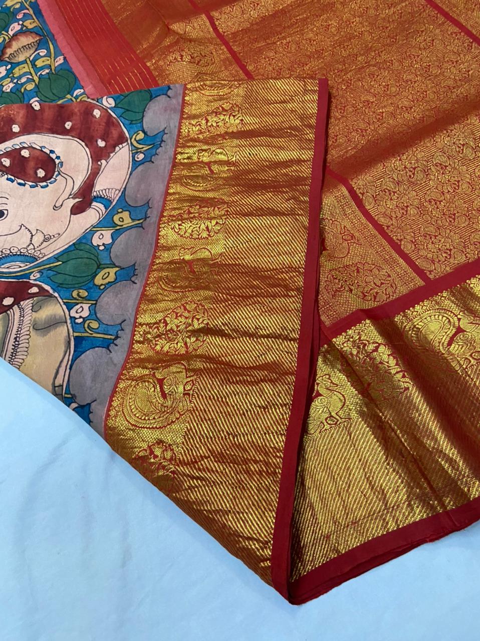 Kanchipuram Pure Handloom korvai silk saree with Pen Kalamkari -PDS001PKs