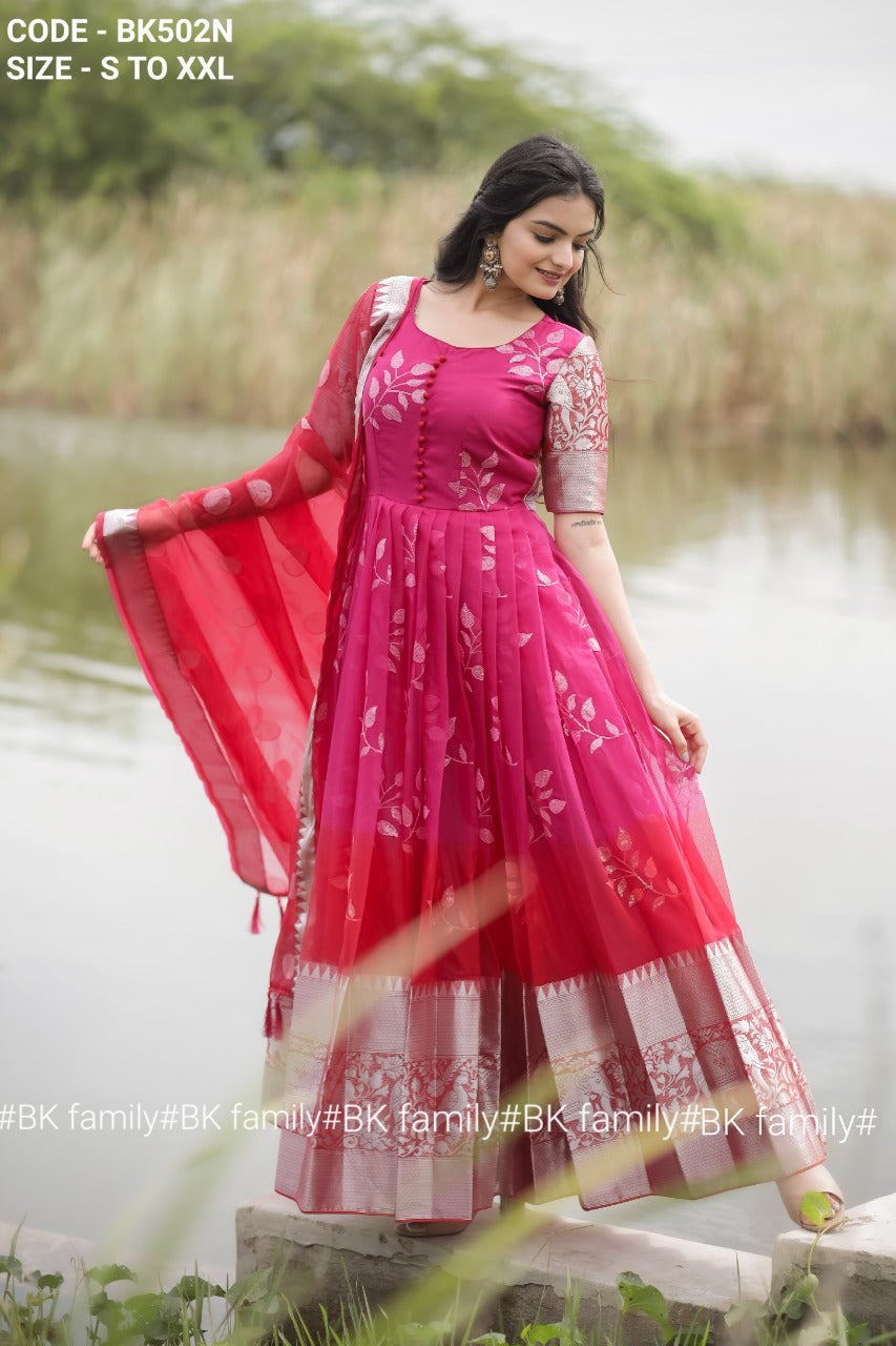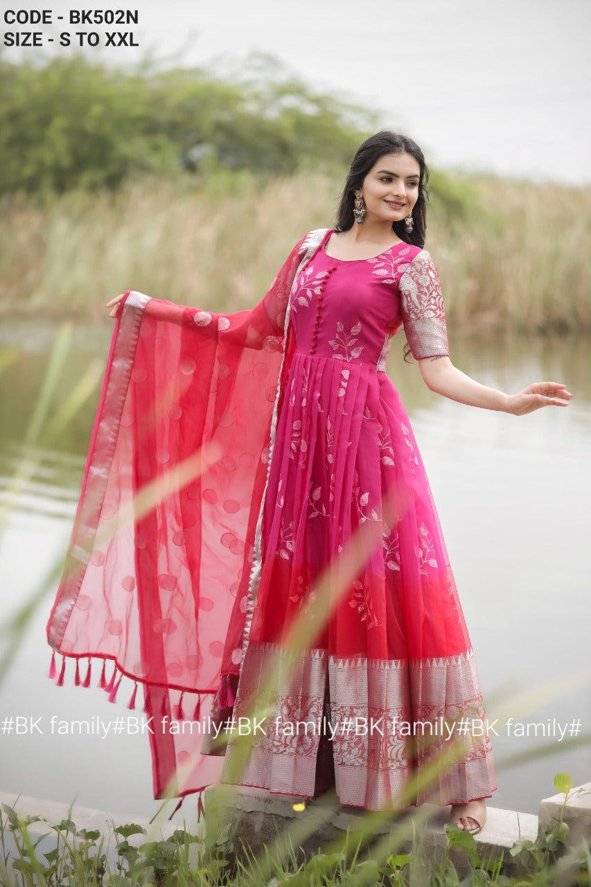 Pink and Red Colored Party Wear Gown in Organza Material-TANI001PWG
