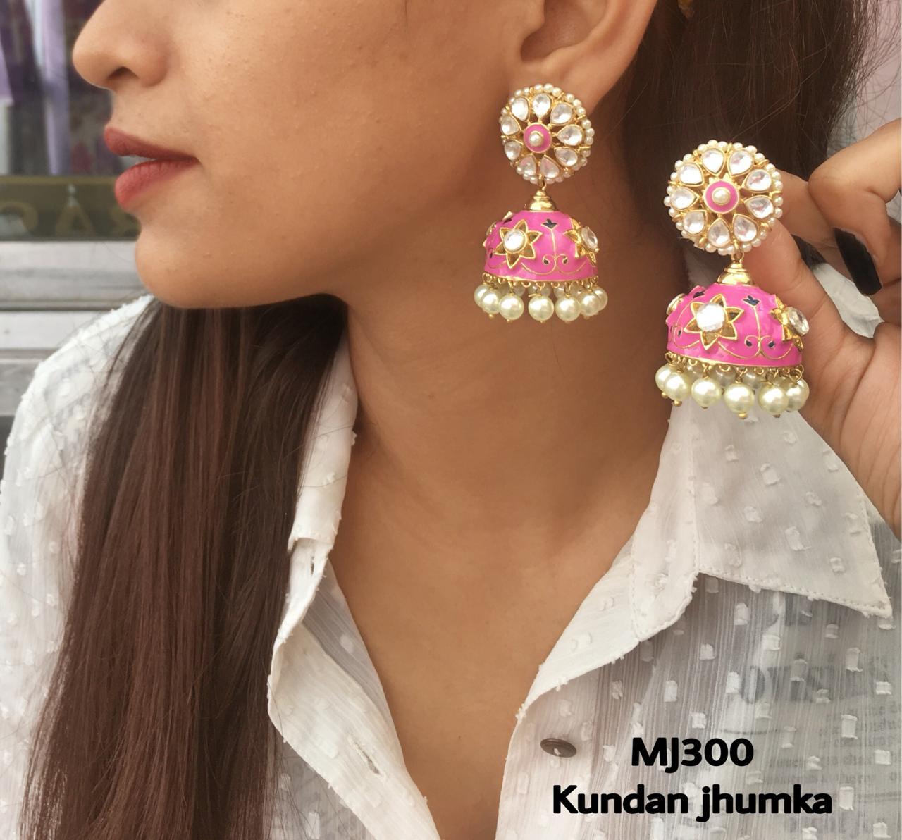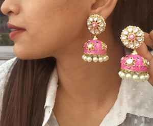 PREMIUM QUALITY PREMIUM KUNDAN JUMKA IN PINK FOR WOMEN