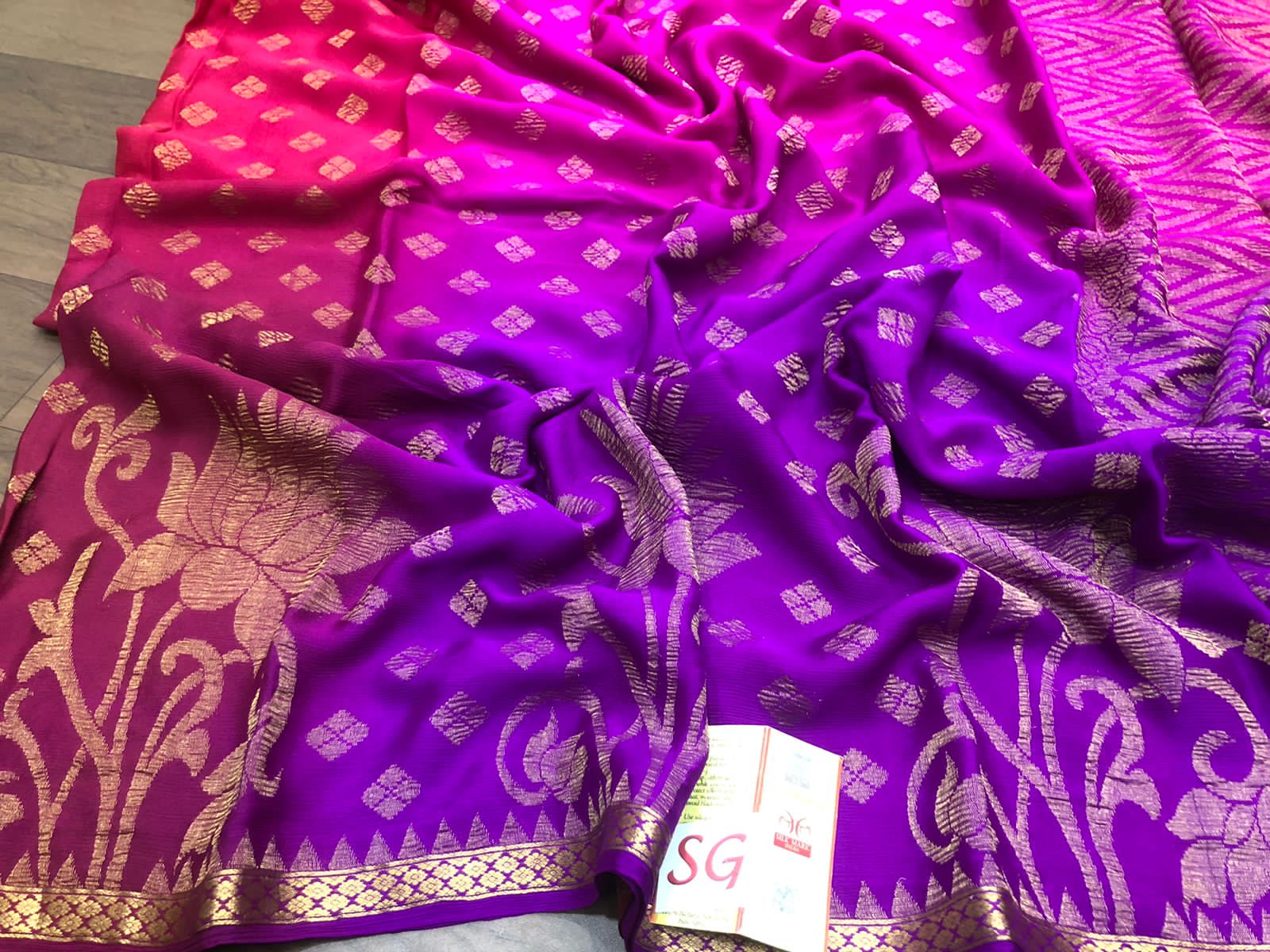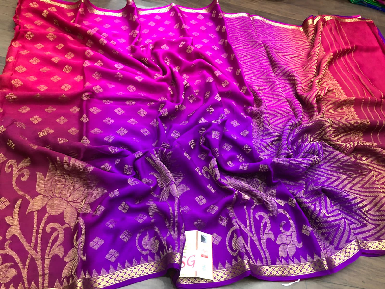 PURE MYSORE WRINKLE SILK SAREE WITH NATURAL 3D COLOR DYEING ALLURING SOFT ZARI WEAVED ALL OVER CONTRAST BLOUSE -PRIY001MVP