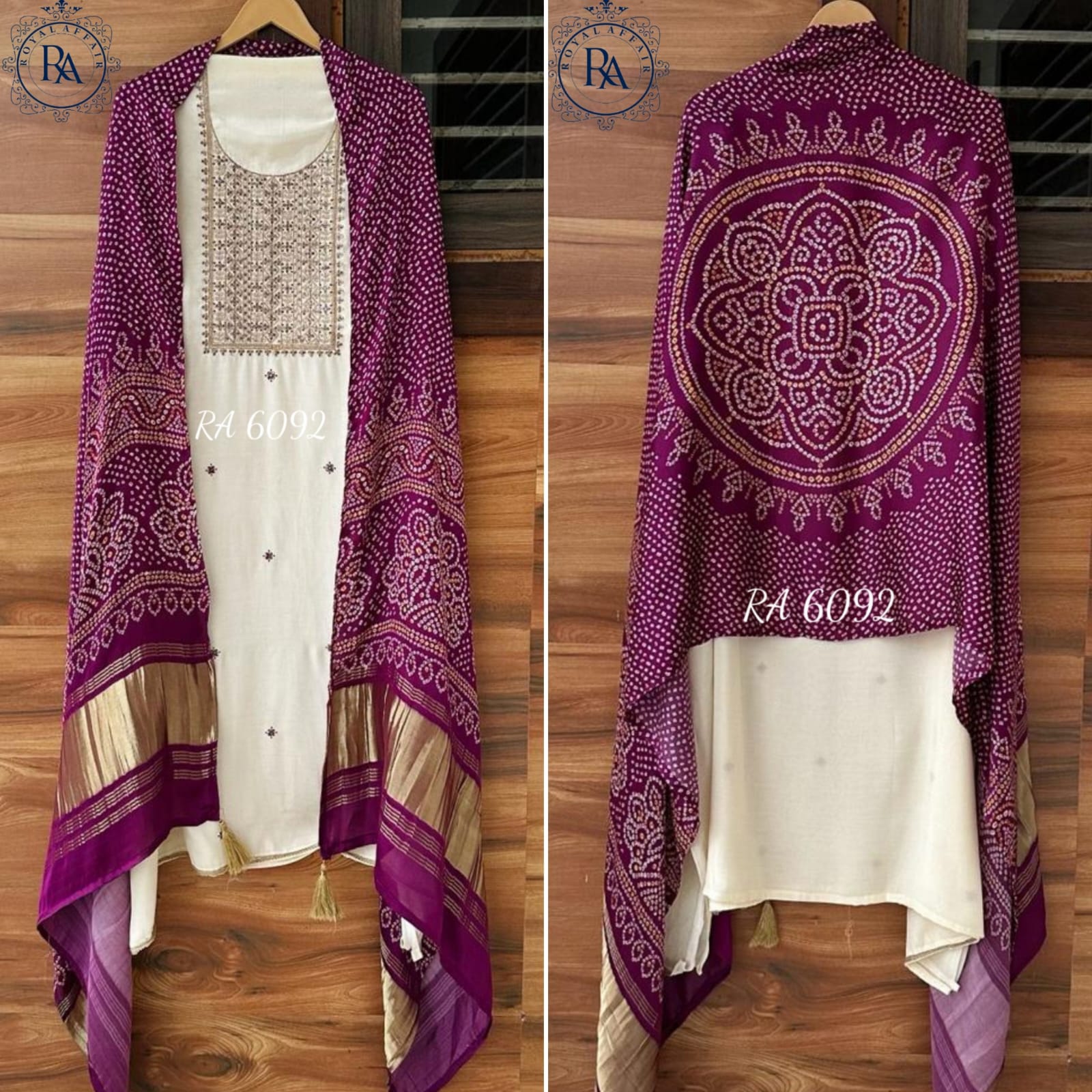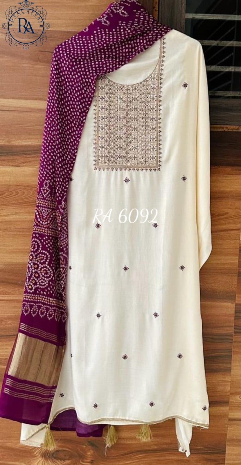RA 6092 Royal Affair presents  pure Russian silk unstitched shirt with beautiful embroidery on neck and bootas all over-ZAIRA001SSM