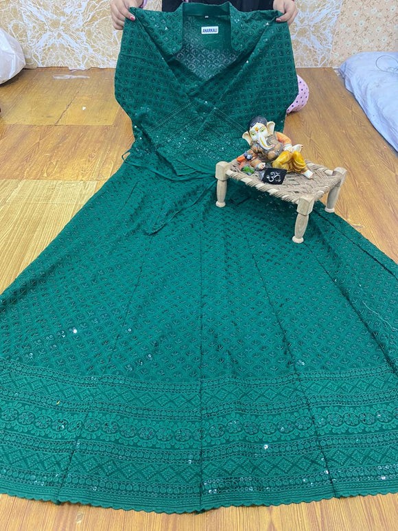 RAMA GREEN Beautiful Chikan Anarkali with Sequins work Kurti for Women -MAWFHKW001