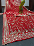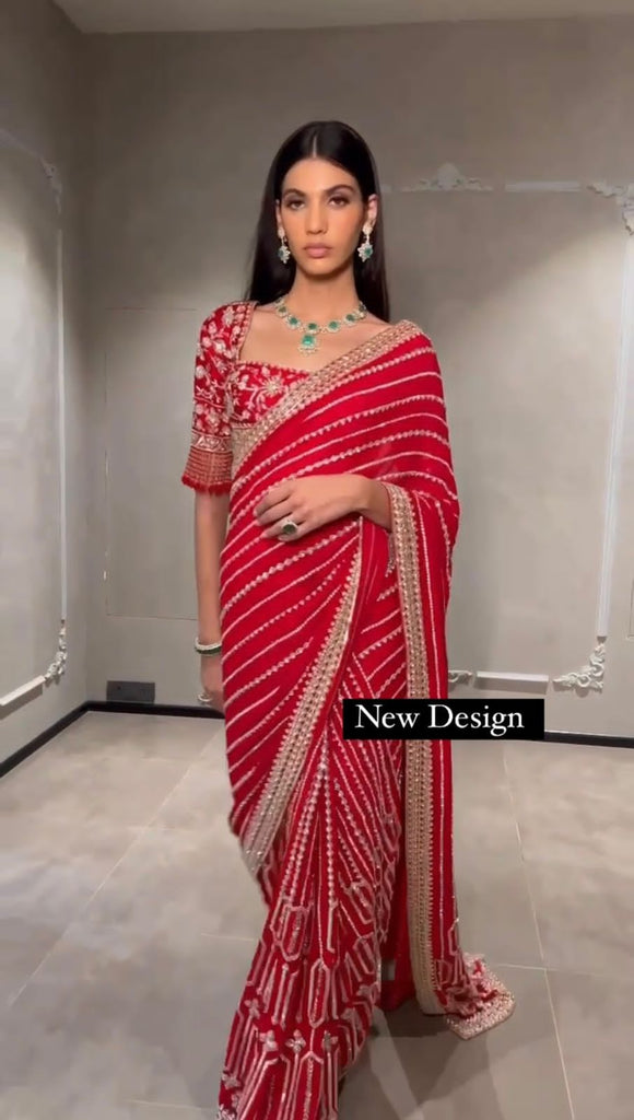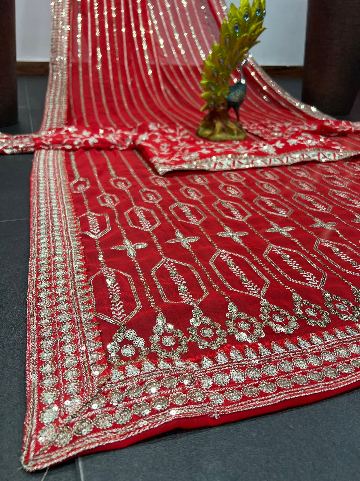 Red Sequins Designer Saree on Faux Georgette fabric with Sequins with Thread work-SHREE001RS