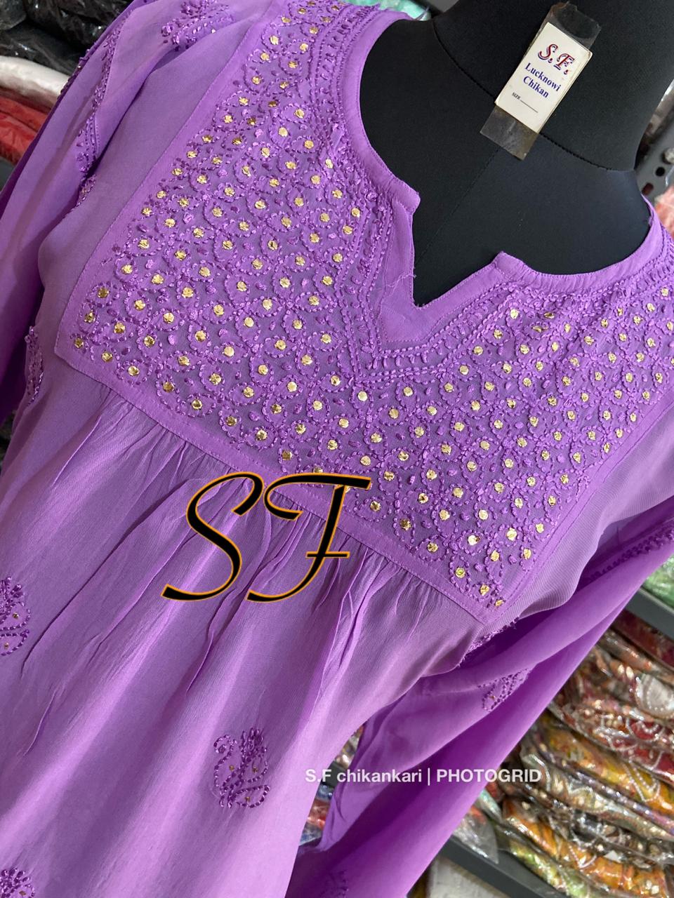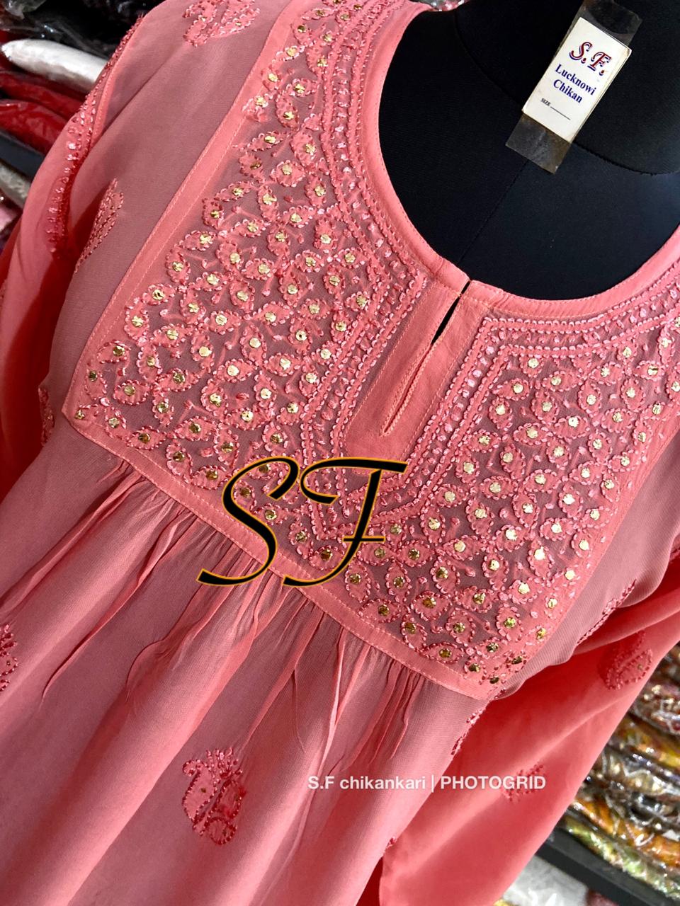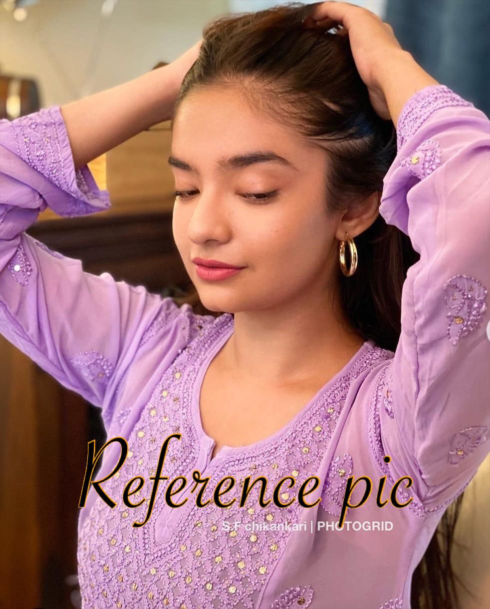 Beautiful tone to tone work of chikankari with fusion of mukesh work