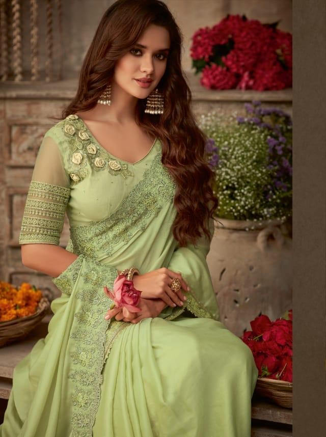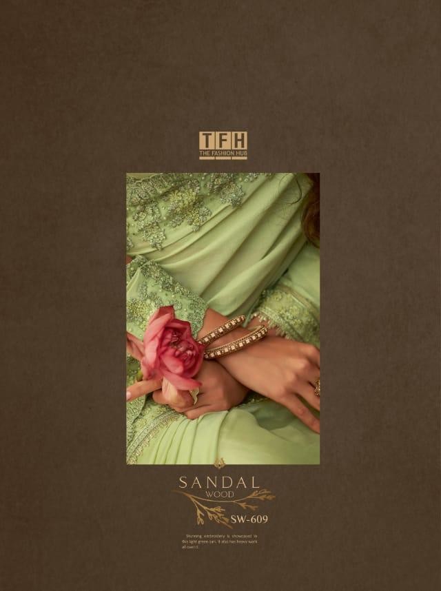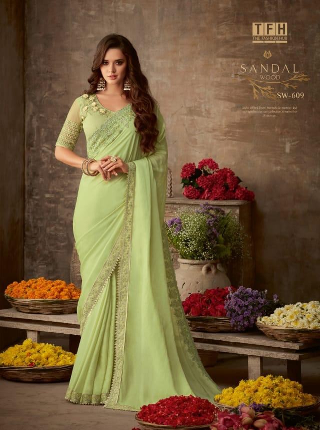 Sandal Wood Silk Party Wear Sarees are exclusive stylish Sarees which you need in all special occasions. The Fashion Hub TFH Sarees always brings new concept with attractive colours, Resham embroidery work border with classic heavy work blouse. All TFH Sandalwood Saree has the unique design and nice stylish combination. TFH Sandal Wood Saree blouse has contemporary exclusive Sarees look.