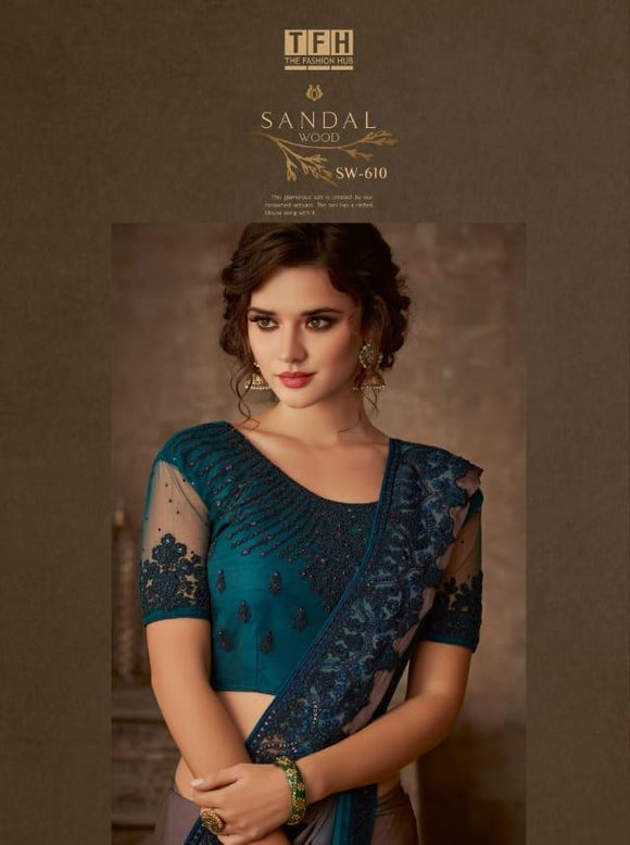 Sandal Wood Silk Party Wear Sarees are exclusive stylish Sarees which you need in all special occasions. The Fashion Hub TFH Sarees always brings new concept with attractive colours, Resham embroidery work border with classic heavy work blouse. All TFH Sandalwood Saree has the unique design and nice stylish combination. TFH Sandal Wood Saree blouse has contemporary exclusive Sarees look.