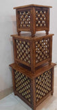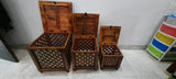 SET OF 3 , SHEESHAM WOOD/ROSE WOODÂ STORAGE BOX CUM WOODEN STOOL-SKDWS001
