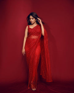 Sexy Red New Bollywood Block Buster Design sequins Saree For Women-SS001RS